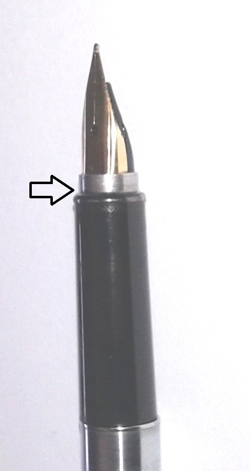 - Ho riassemblato il tutto. Dopo un'ora ho tolto il cappuccio e impugnata la penna.....sull'impugnatura, nella parte in plastica nera tra fusto e pennino, QUEI TRE O QUATTRO CENTIMETRI, c'era uno strato uniforme d'inchiostro. INCHIOSTRO!