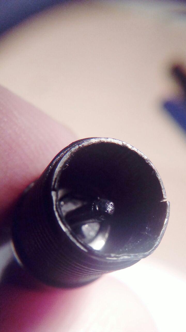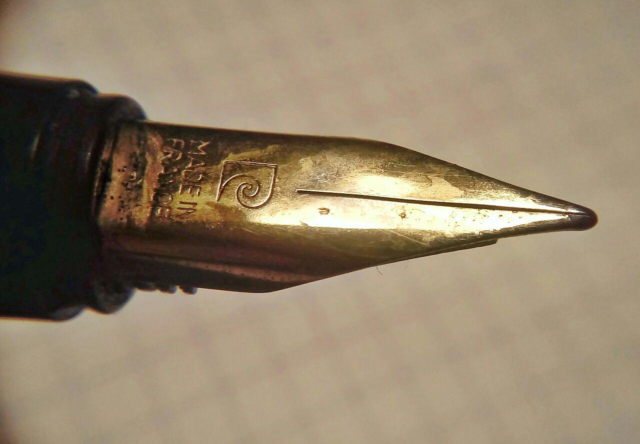 La Pierre Cardin di cui parlavo. Presenta due crepe alla base del fusto (per intenderci, dove c'è la filettatura interna che accoglie la sezione), e due nel cappuccio, che non ho fotografato in quanto la riparazione da fare sarebbe identica a quella del fusto.