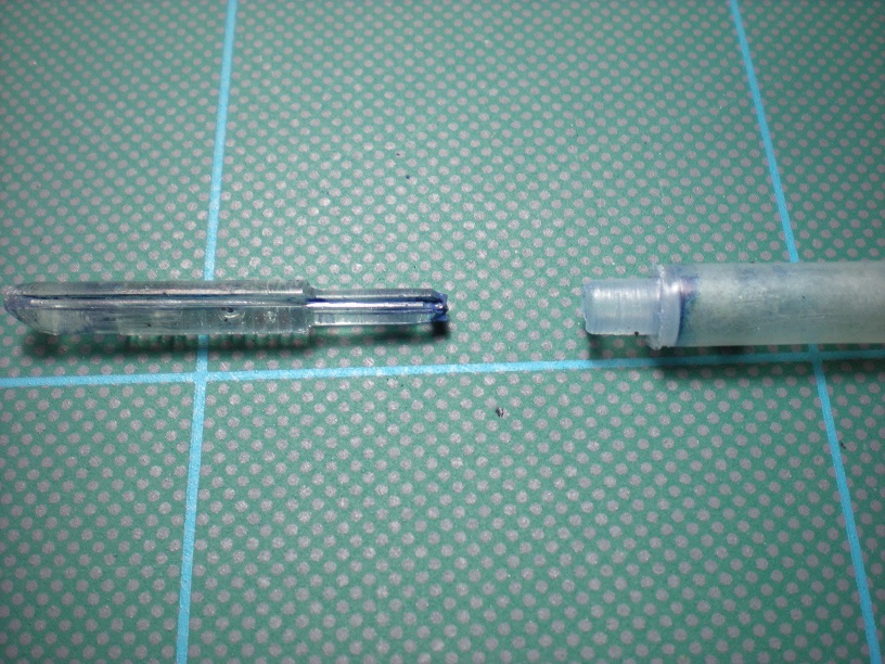 Nel suo articolo dedicato alla LUS (https://newpentrace.net/articleGA02.html), Giovanni Abrate parla di cartucce in polistirene. La cosa mi sembra strana, anche perché le istruzioni per il caricamento della Atomica n°1 specificavano d'inserire la cartuccia e poi di "premere la parte molle della cartuccia onde fare uscire una goccia d'inchiostro": mentre il polipropilene è adatto ad una tal manovra, per le sue caratteristiche, il polistirene non lo è, perché rimane piuttosto rigido.
