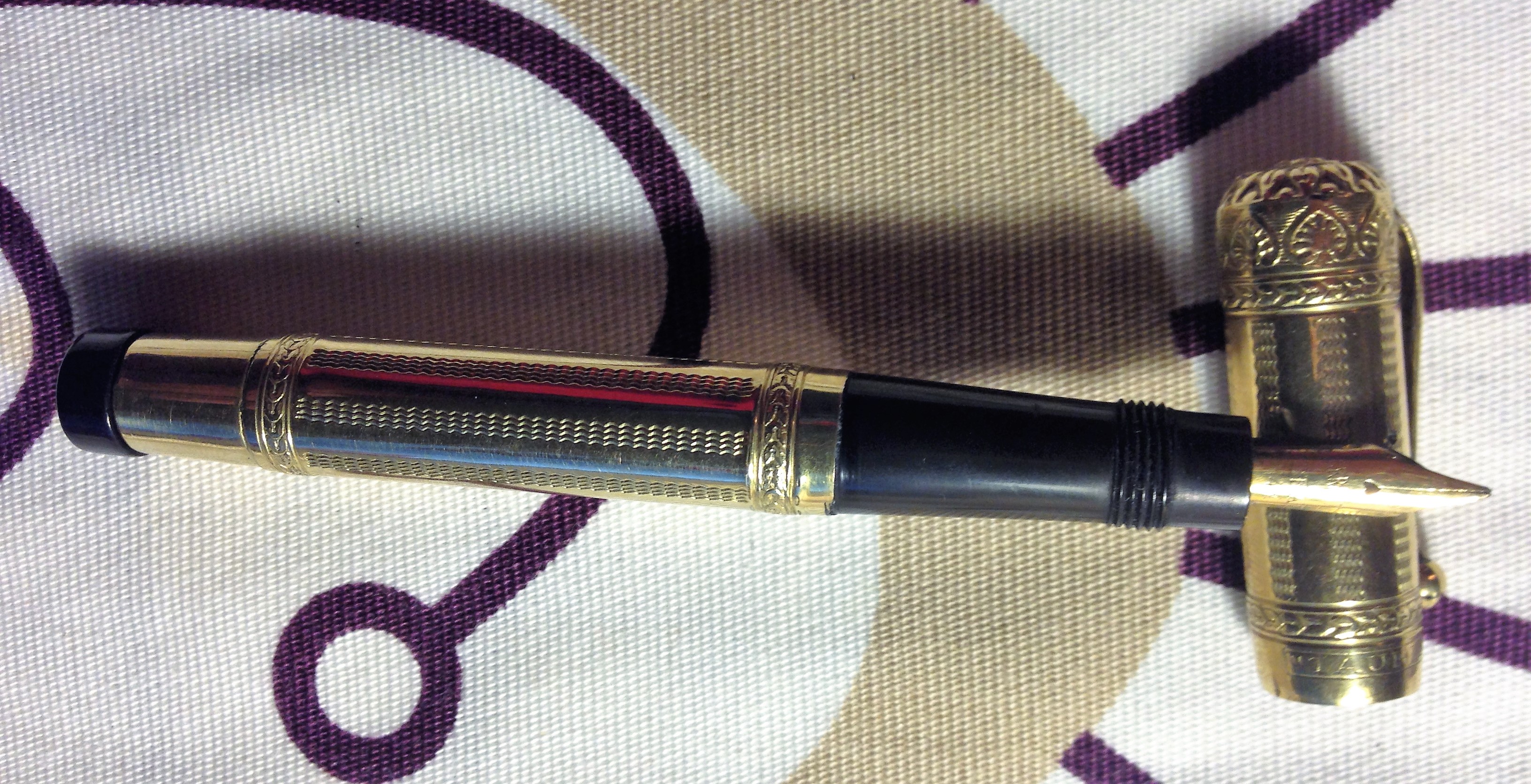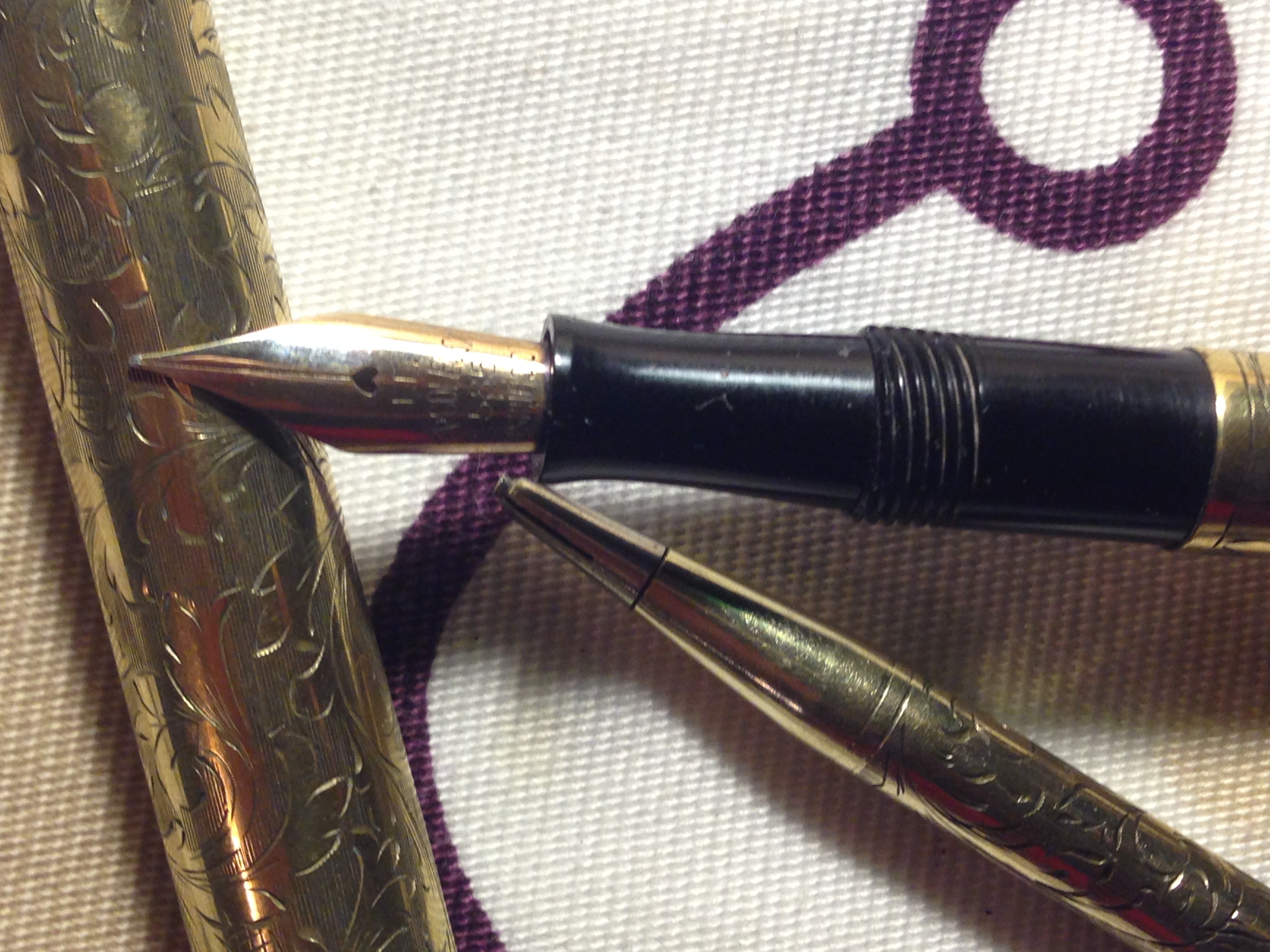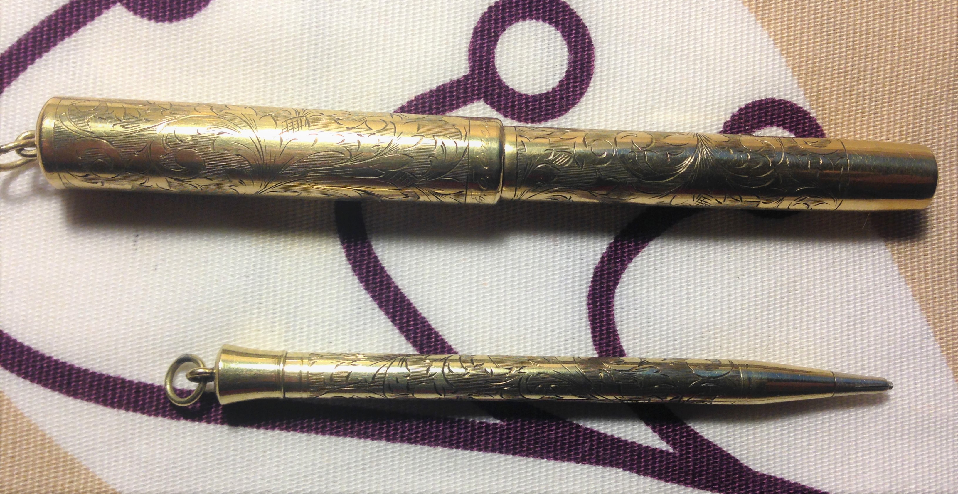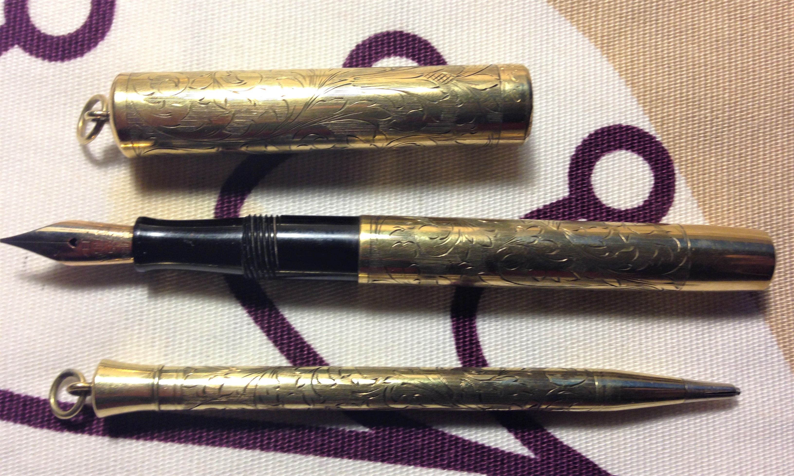 e poi una bella parure E.E: Ercolessi portamine con ancora le mine di riserva, stilografica con pennino originale Ercolessi perfetto, bellissima la laminatura incisa.