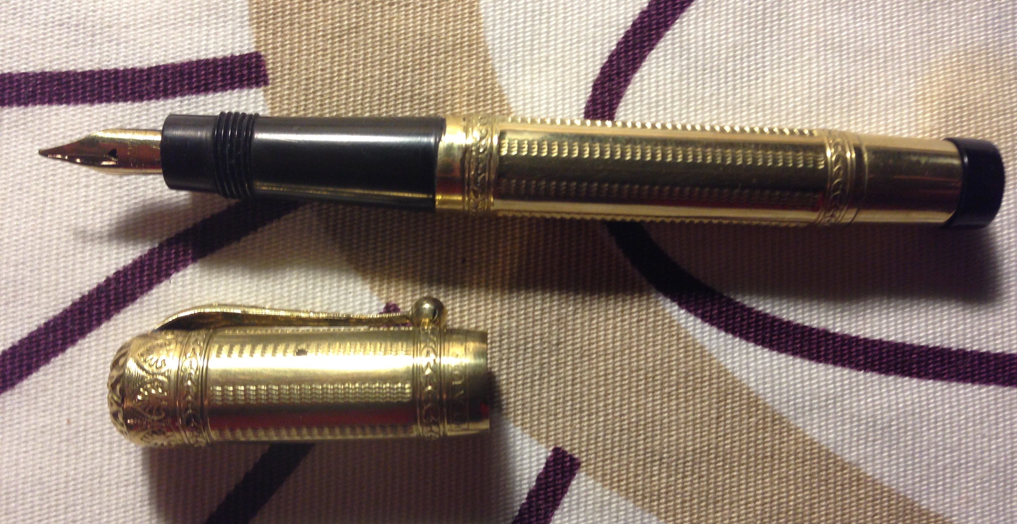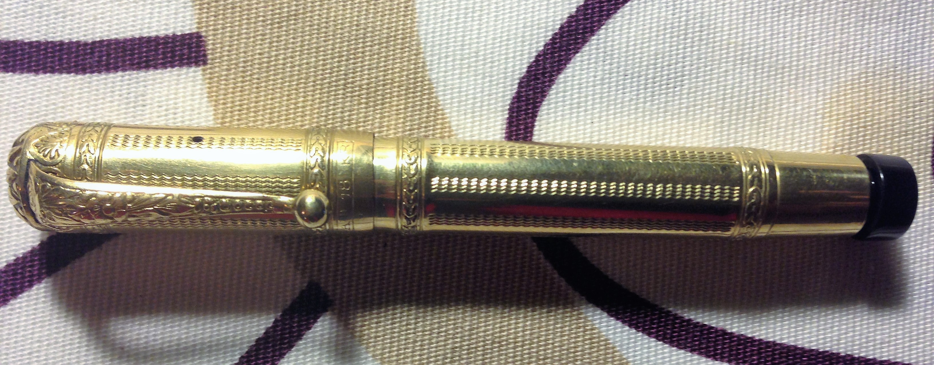 la prima marchiata "Taurina 18 kr" di cui non ho trovato notizie in rete, presuppongo di fattura torinese visto il riferimento. rivestimento semplice ma accattivante, pennino Warrented Ideal 2 con una leggera piegatura, sistema rientrante pare in ottimo stato.