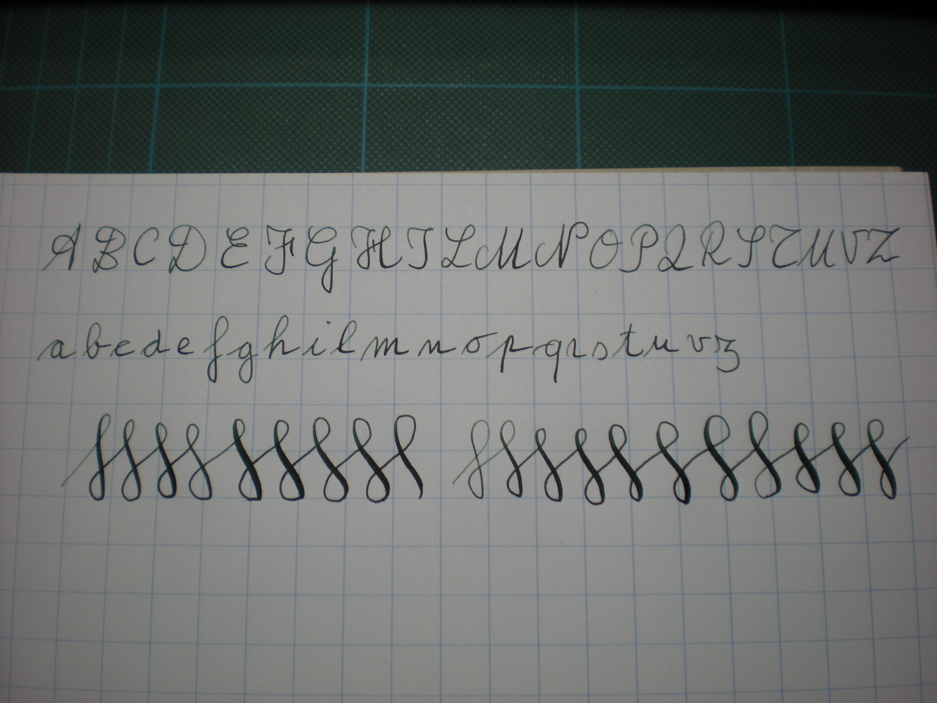 segue un esempio di scrittura con la pressione normale della mano e premendo un po' di più per far notare la notevole escursione del tratto del pennino