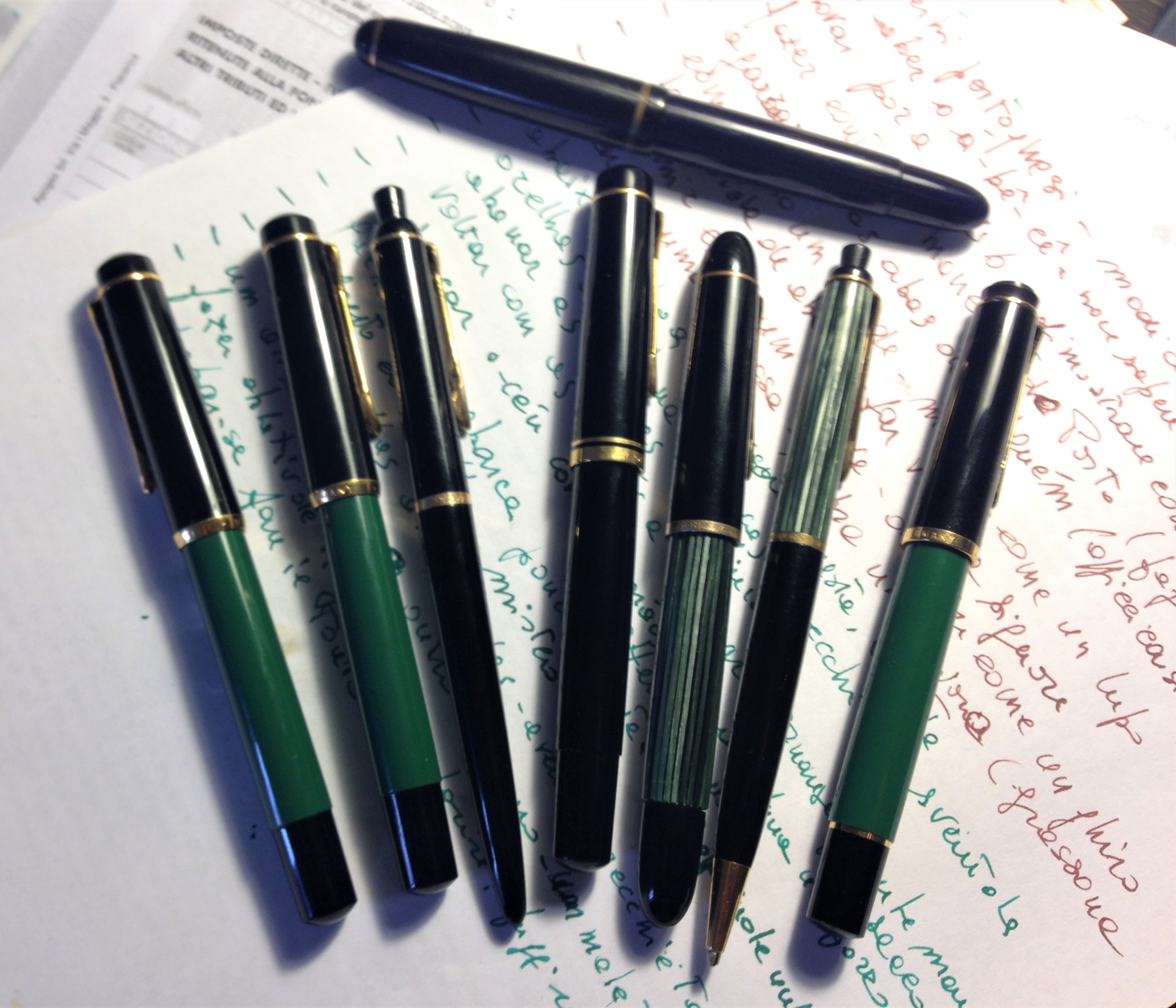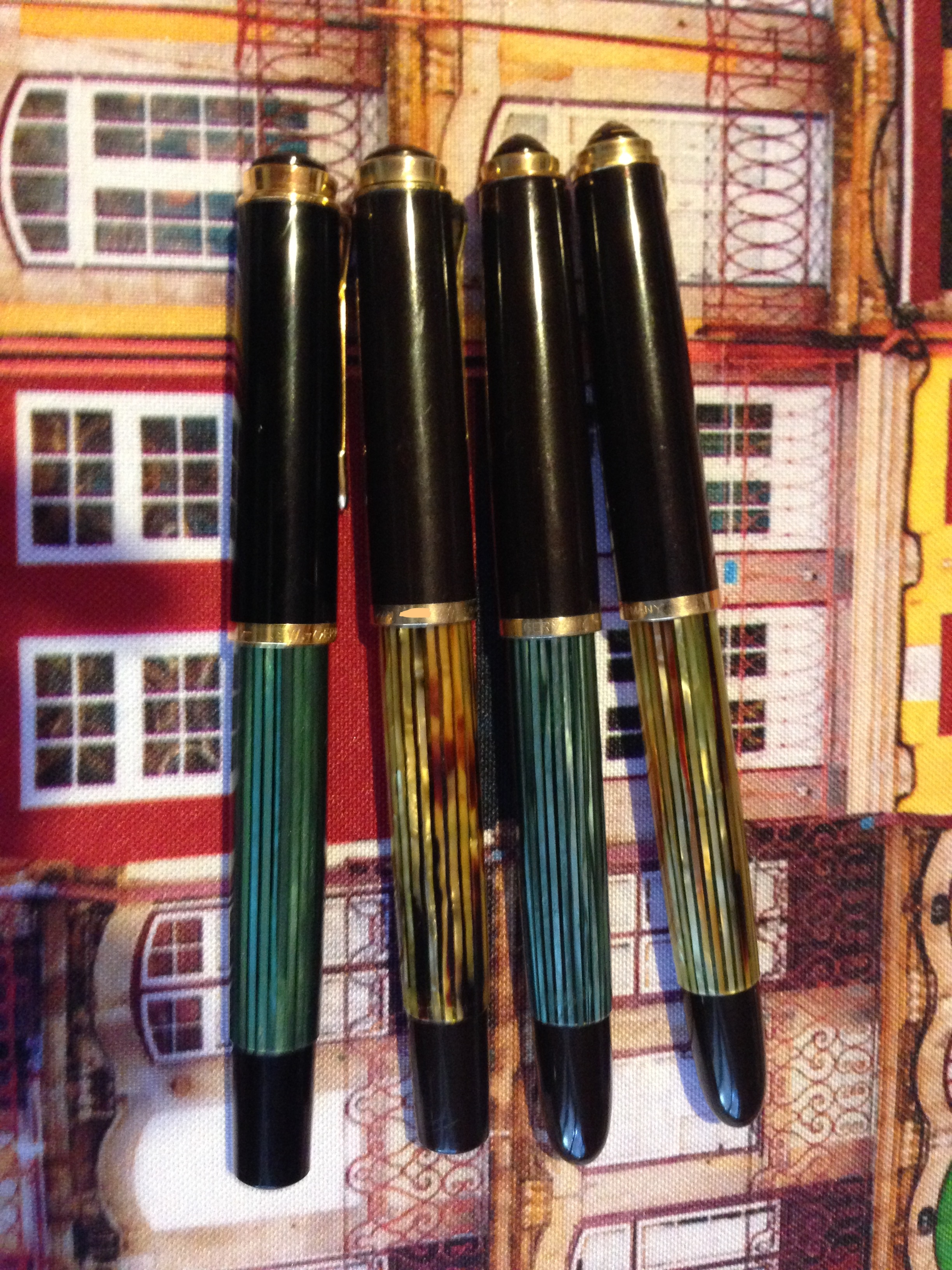 Il mondo Pelikan è infinito, varianti su varianti, riproposizioni … e chi più ne ha più ne metta, ve ne presento 4, la quinta penso la stia usando il "geometro" visto che nel mobiletto non c'è.
