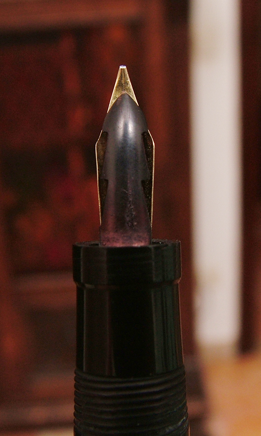Ciao Mariella, si, il colore è particolare, il pennino l'ho messo io, è un flex, ma purtroppo non è il suo.