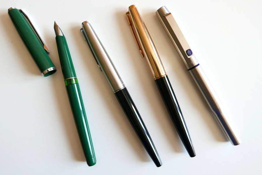 Quest'anno, qualche mese fa, aprendo il cassetto sono stato stranamente attratto dalla Parker 25, che ora trovo molto bella e ben fatta, l'ho presa, era caricata con un inchiostro marrone Parker comprato ad Amsterdam durante una gita scolastica. L'ho provata ed è partita quasi immediatamente e scriveva magnificamente. Da quel giorno ogni tanto la usavo in casa per riprovare il gusto di usare la stilografica. Poi mi è venuta la curiosità di vedere se ancora si trovavano in vendita e qual era il loro valore. Ho cominciato a cercare in rete e mi si è aperto un mondo che per me era sconosciuto...e ci sono cascato dentro con le mani e con i piedi.