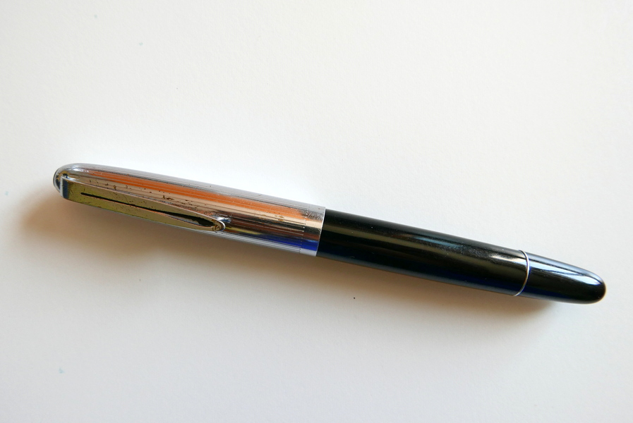 Qualche giorno fa, la mia mamma novantunenne con problemi di memoria, aveva perso, come ogni tanto le accade, la dentiera, che in genere troviamo nei posti più impensati. Nel tentavo di trovarla ho guardato nella scrivania di mio padre, che era geometra, dentro una scatola piena di matite, penne, rapidi, pezzi di compasso ecc. e tra tutto ciò vedo questa: Ricordavo questa penna fin da bambino (primi anni '60), l'ho sempre vista non funzionante e mio padre ne parlava con una certa delusione perchè evidentemente aveva smesso di funzionare un pò troppo presto, però stranamente non l'aveva mai buttata.