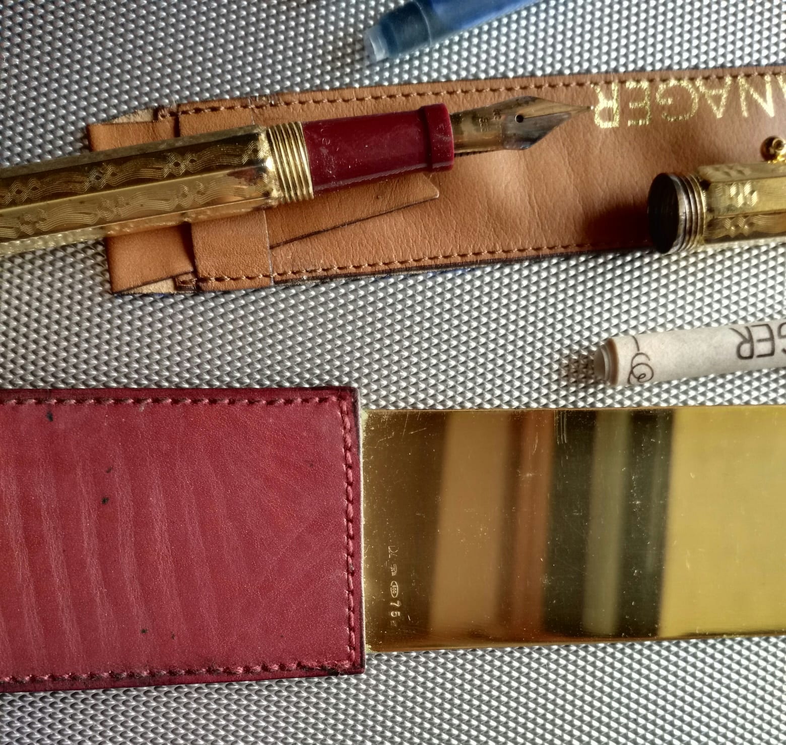 Il modello dovrebbe essere "Reminiscence". Una penna credo in argento, laminata in oro con marchiato due torri 585, dovrebbe essere in 14K