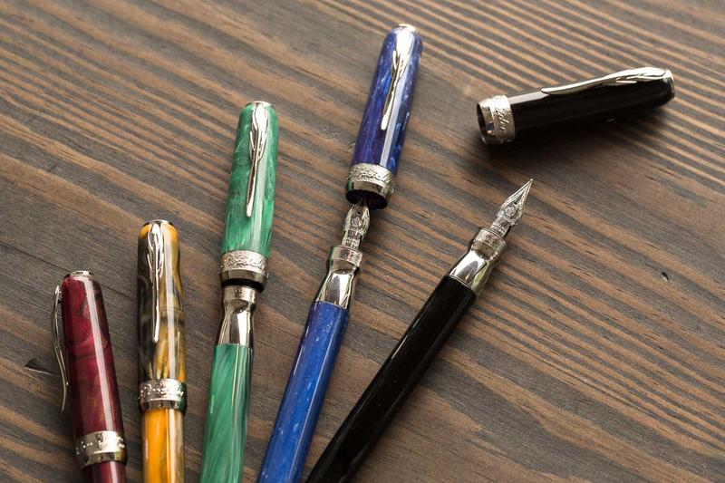 Ogni penna corre con inchiostri diversi su altrettante innumerevoli carte. Alcune scivolano rapide, altre con piena lentezza, altre grattano ritmi piacevoli. Ognuna esprime un suo carattere che lo scrittore dolcemente doma.