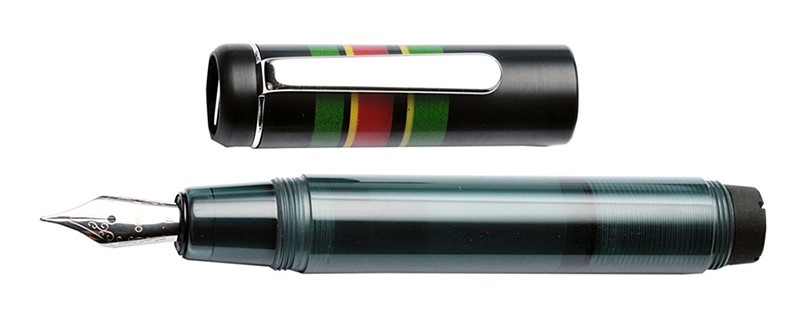 Made in Taiwan, tappo e fondello in ebanite, corpo in acrilico. Eyedropper, con meccanismo di blocco per il trasporto. Pennino Jowo nelle misure F, M e B. Fascia di prezzo medio-bassa.