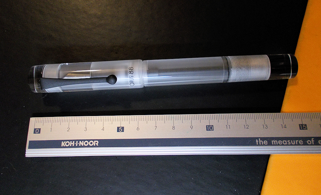 Opus 88 è una azienda con sede a Taiwan. Il fondatore, Michael Hsu, oltre a lavorare come fornitore di altre aziende, nel 1988 decise di avviare la commercializzazione di strumenti di scrittura con marchio proprio. Il che sembrerebbe non lasciare dubbi sul significato delle due cifre “88” nel nome dell’azienda. Oggi l’azienda produce penne stilografiche di design, caratterizzate dal caricamento a contagocce (“eyedropper” per gli appassionati), tra cui questa “Koloro Demo” con pennino medio, che è stata cortesemente messa a disposizione per la recensione da Marco Moricci della “Casa della Stilografica” di Firenze.