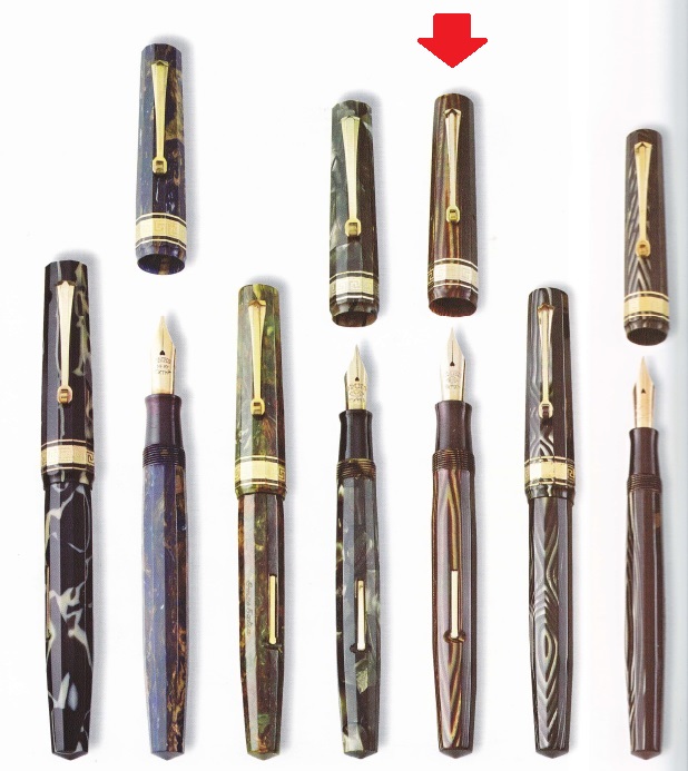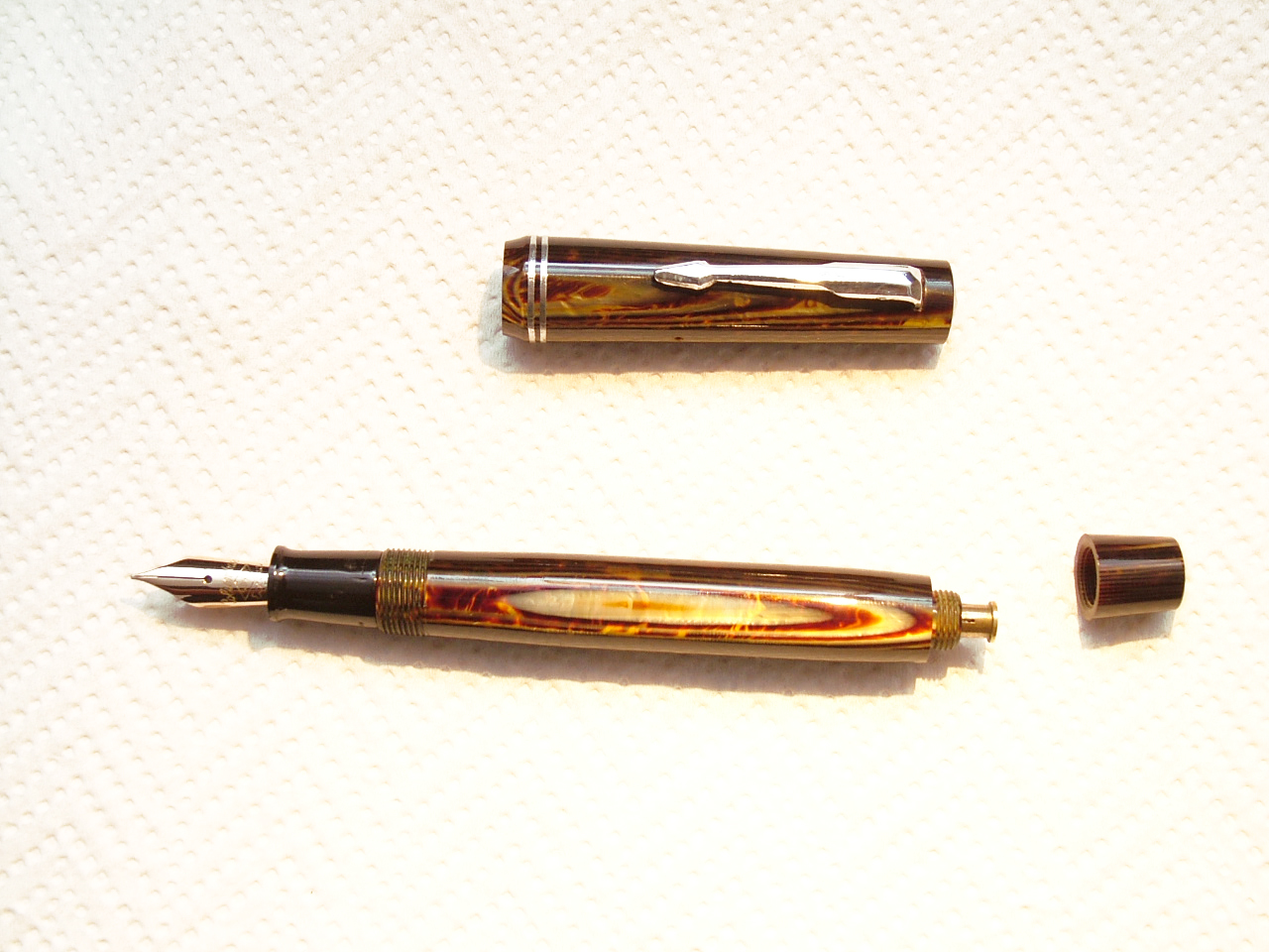 Questa Columbus della metà degli anni '30 ha una magnifica celluloide ad Arco marrone, molto simile, se non uguale a quella delle Omas.