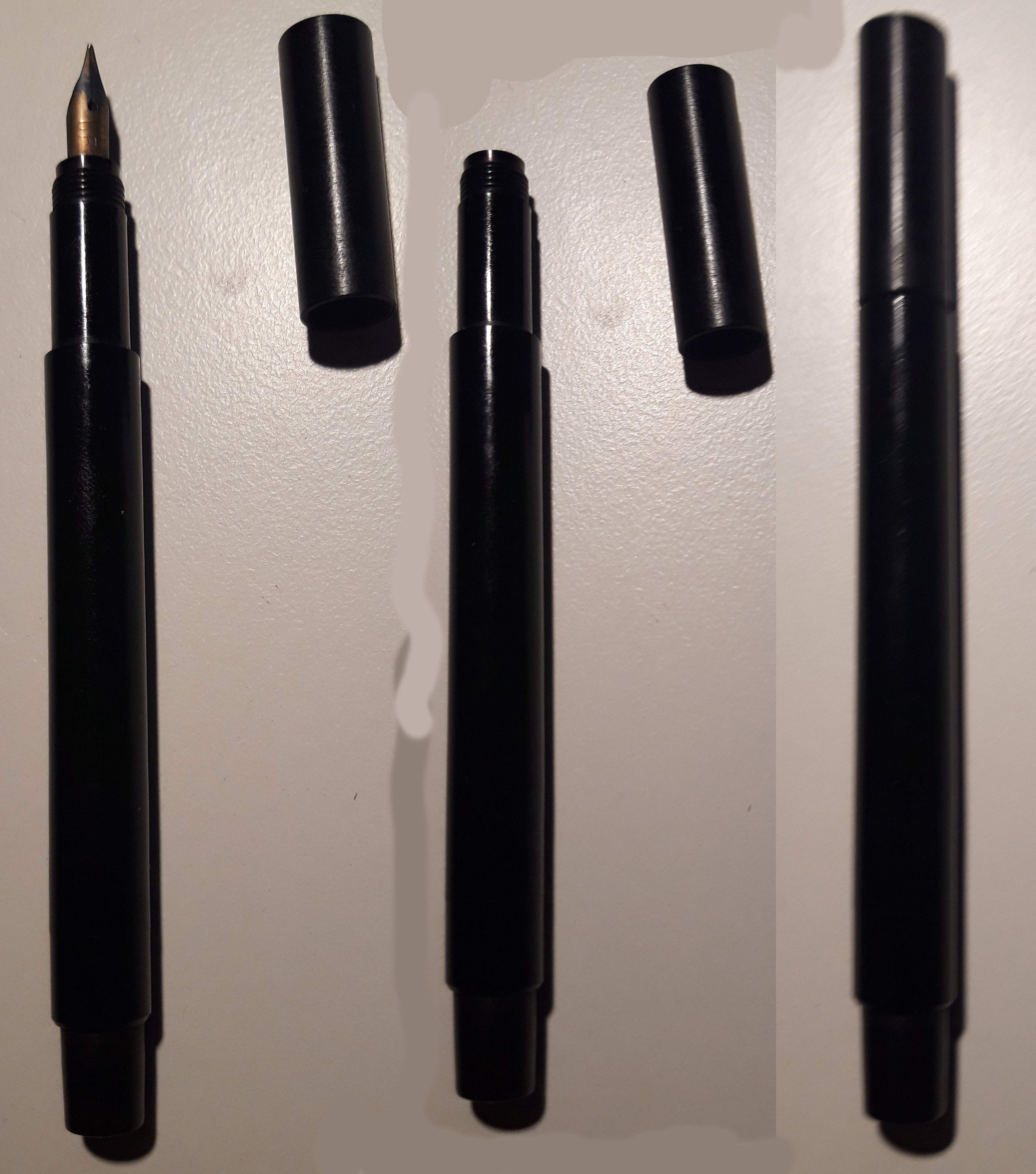 anzitutto un caloroso benvenuto, spero riusciremo ad esserti d'aiuto, ma non è per nulla semplice. Quella penna è molto particolare, non sembrerebbe una rientrante dalle dimensioni del cappuccio (e non mi pare di vedere il fondello per l'estrazione del pennino) ma a contagocce, solo che non capisco come sia montato il pennino.