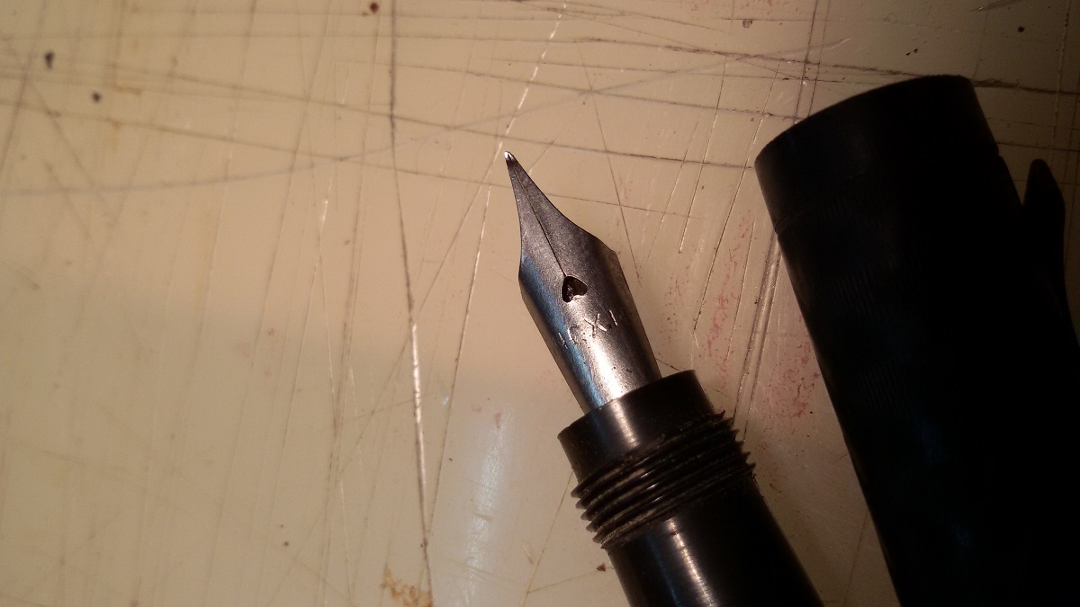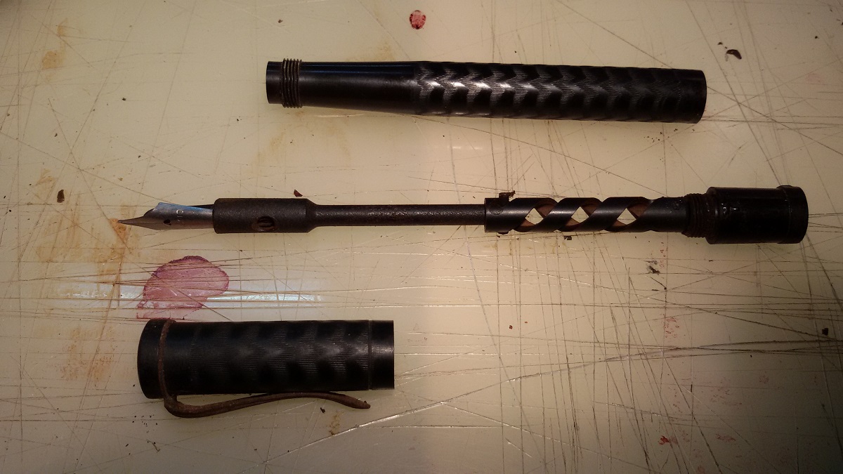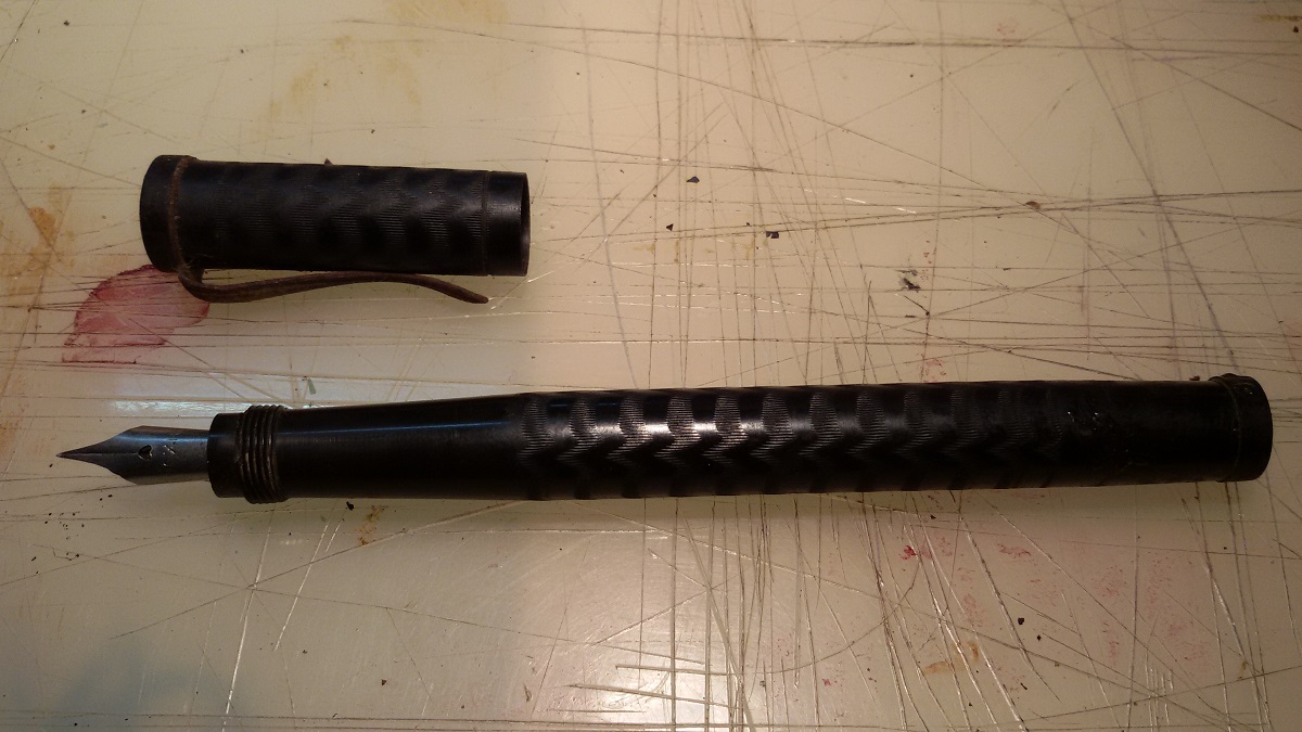Quanto al pennino, oltre a poter essere una sostituzione, c'erano d'acciaio anche a quel tempo, specie sulle economiche. Ma dalla foto è difficile giudicare se è originale o meno.