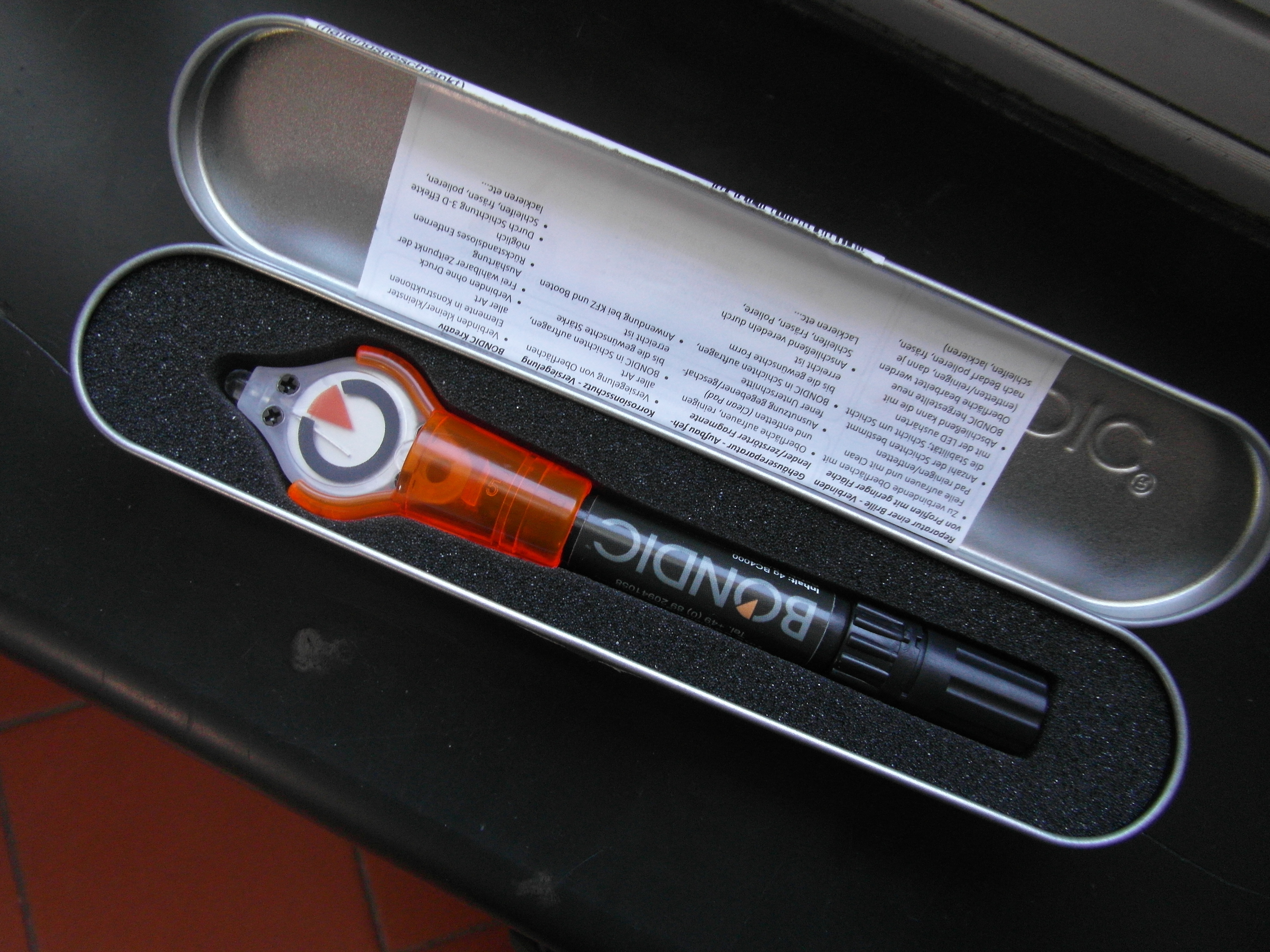 In primo non facciamoci raccontare che il BONDIC è valido come adesivo "senso stretto" perché sembra avere ben poche attitudini a tale uso: d'altra perte mi vien da pensare che se due superfici non trasparenti combaciano, gli UV non possono penetrare ed innescare il processo d'indurimento.