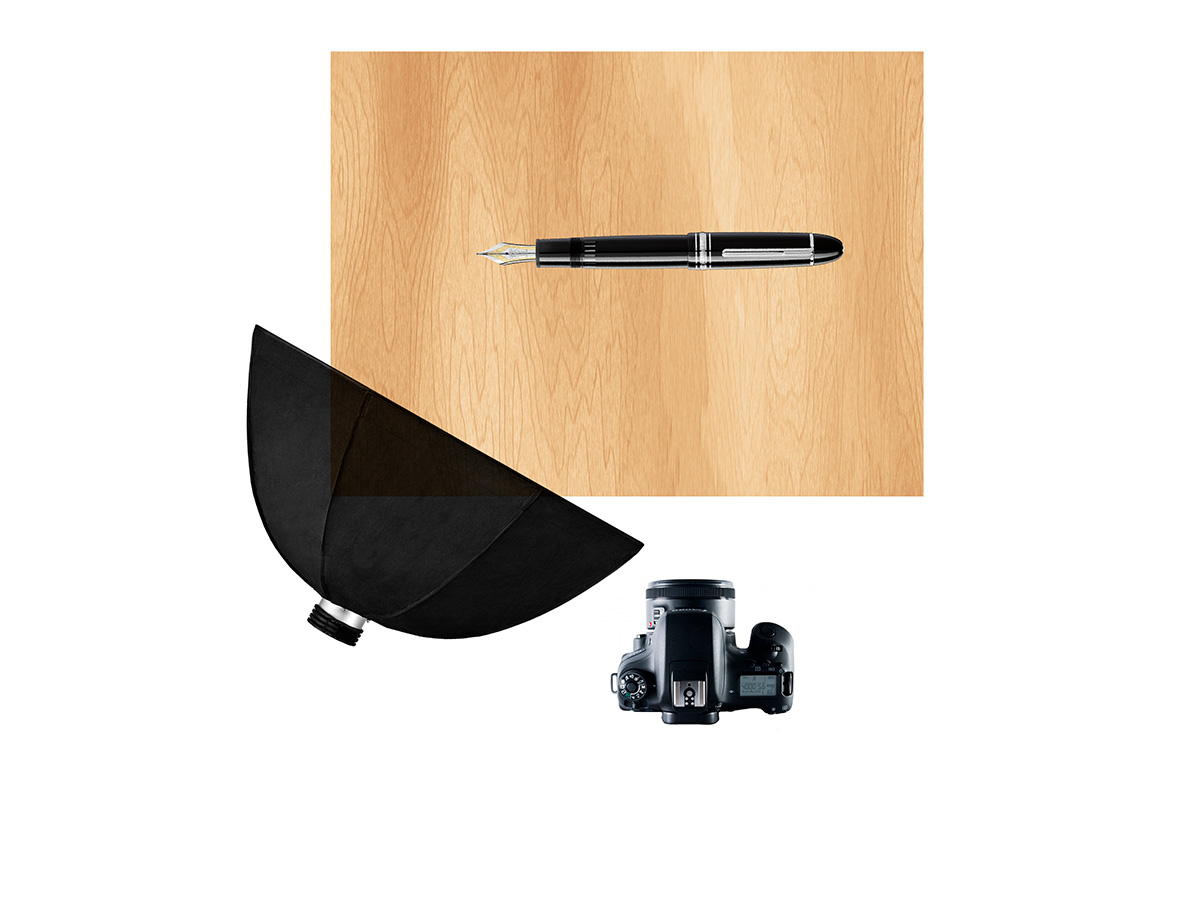 Disponiamo l'oggetto su una delle diagonali lunghe del fotogramma, la custodia della penna è un parallelepipedo, fotografarlo frontalmente equivale a fargli perdere una buona dose di tridimensionalità.