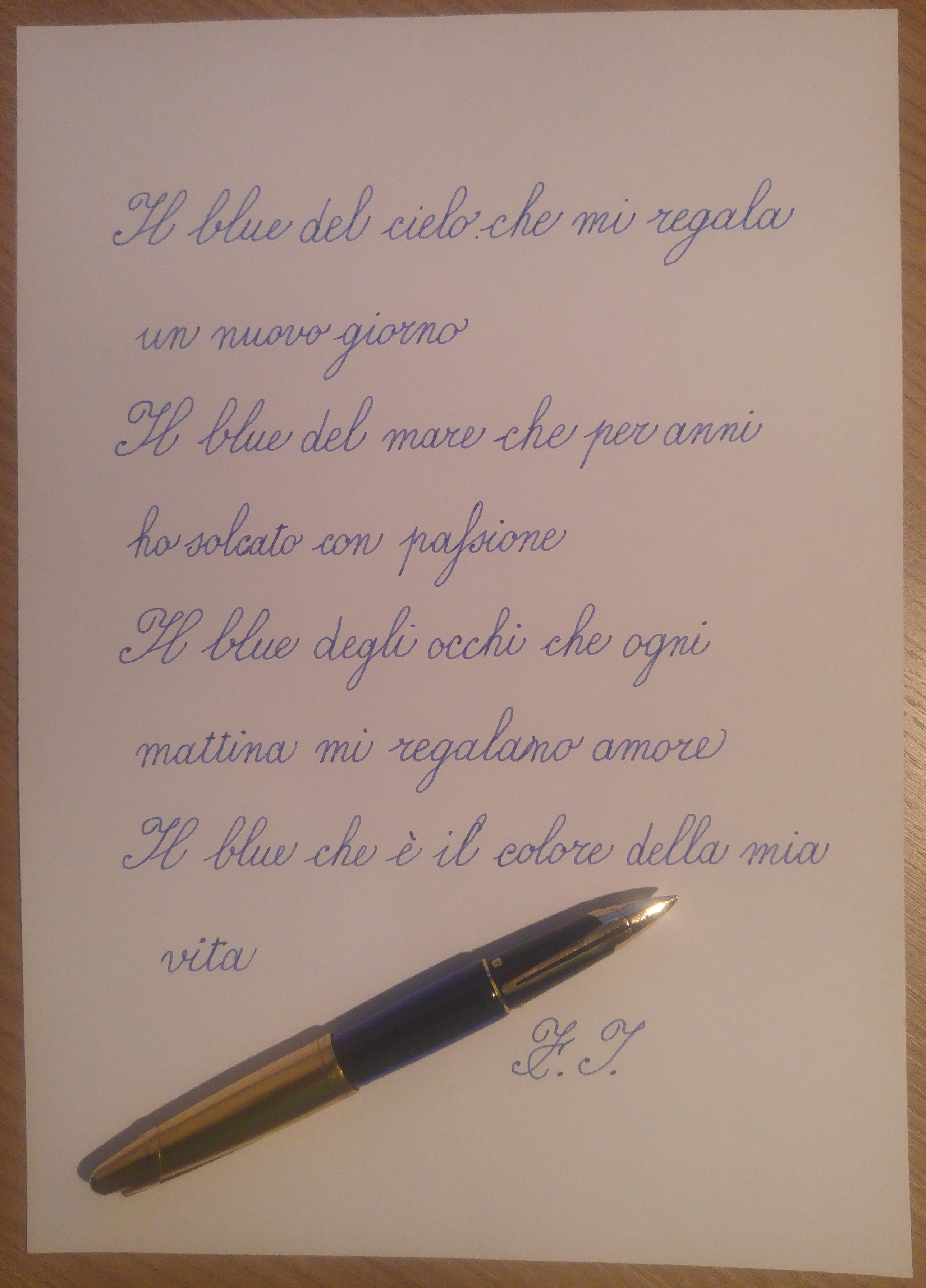 Ogni penna corre con inchiostri diversi su altrettante innumerevoli carte. Alcune scivolano rapide, altre con piena lentezza, altre grattano ritmi piacevoli. Ognuna esprime un suo carattere che lo scrittore dolcemente doma.