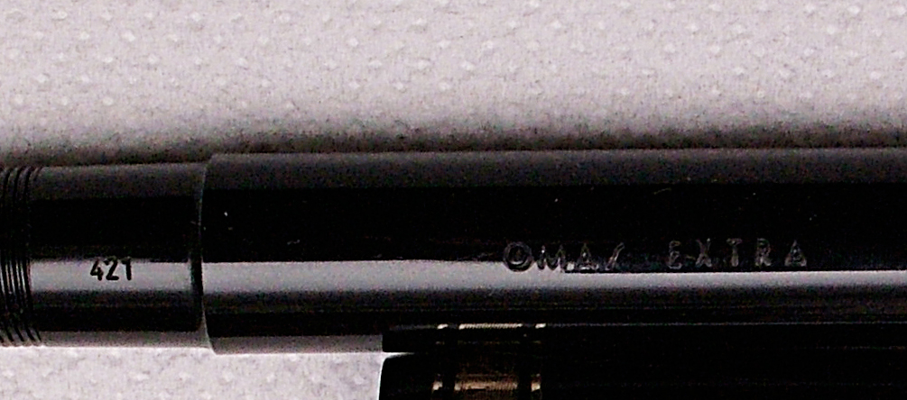 La penna è un Omas Extra credo arte italiana degli anni 90, ma sulla sezione c'è il n° 421 di solito è indicato anche il numero di quella serie prodotte, qui non c'è.