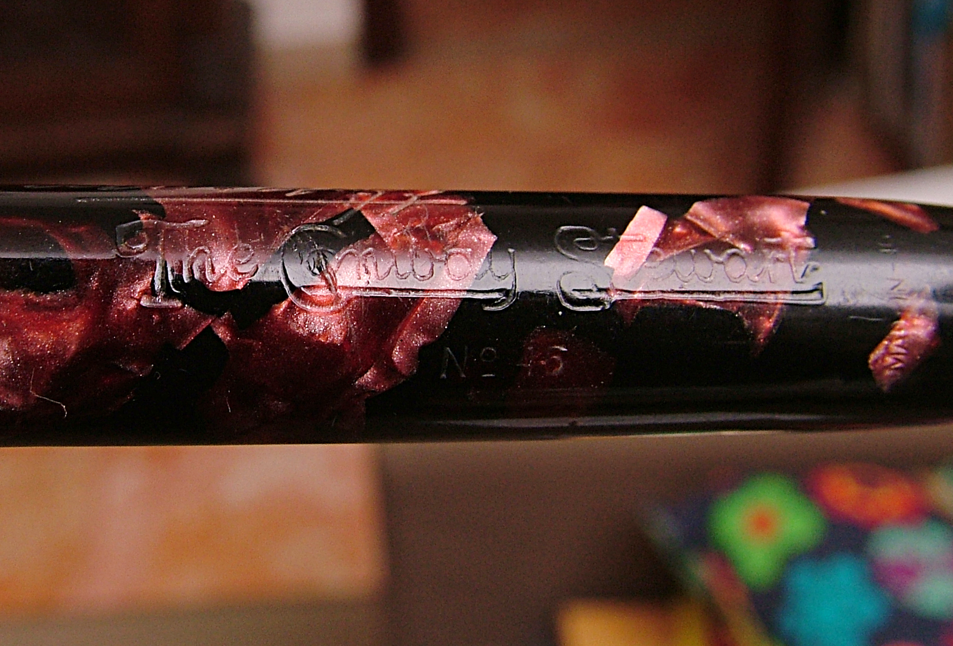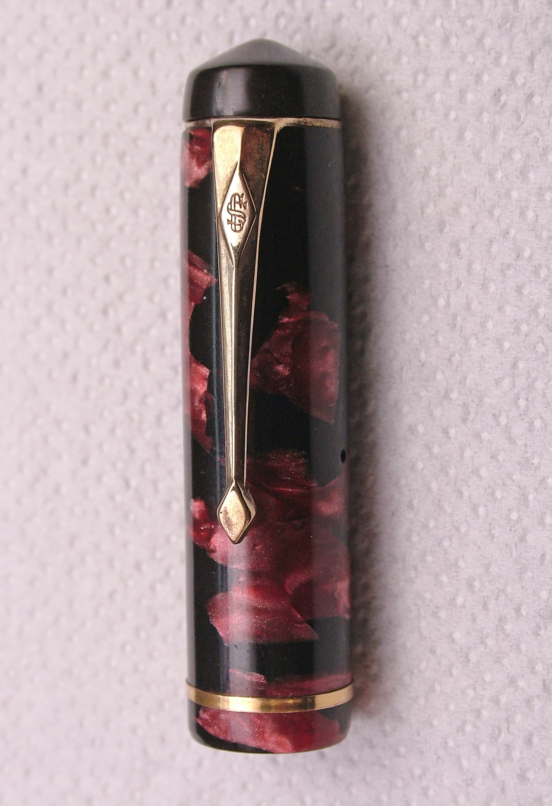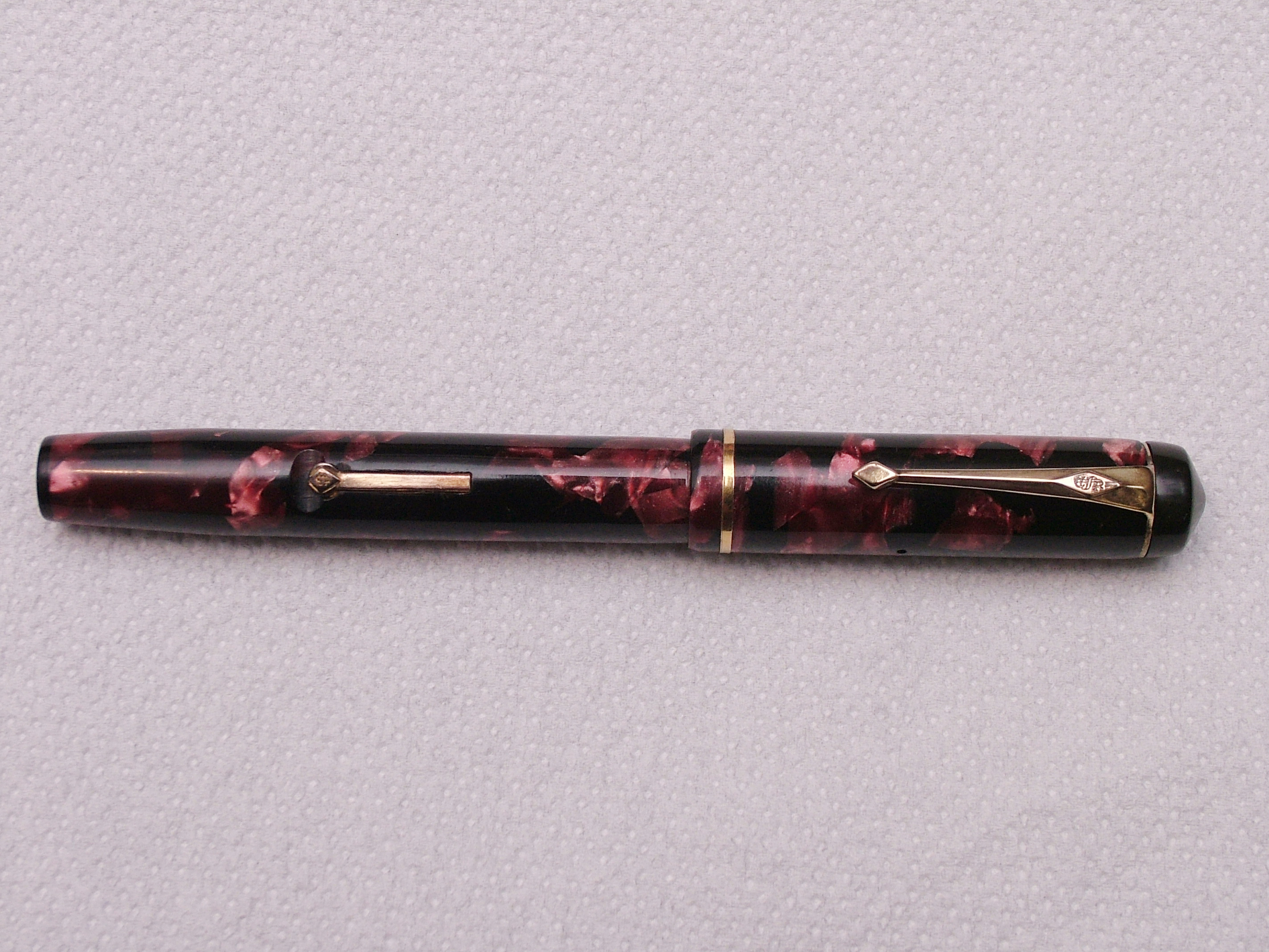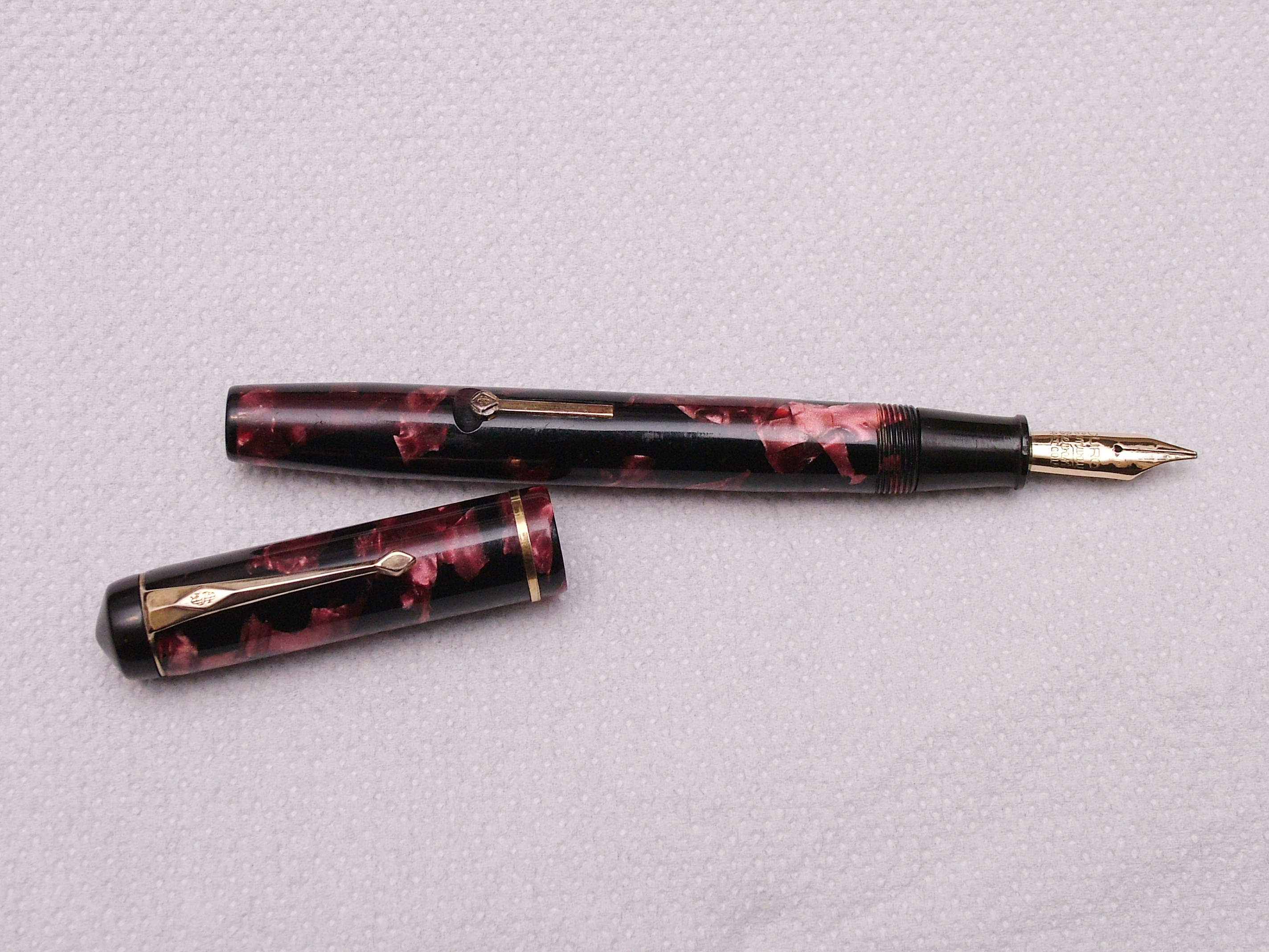 Questa è la mia prima Conway Stewart, non è niente male, penna robusta di celluloide marmorizzata rosso quasi rosa e nera.