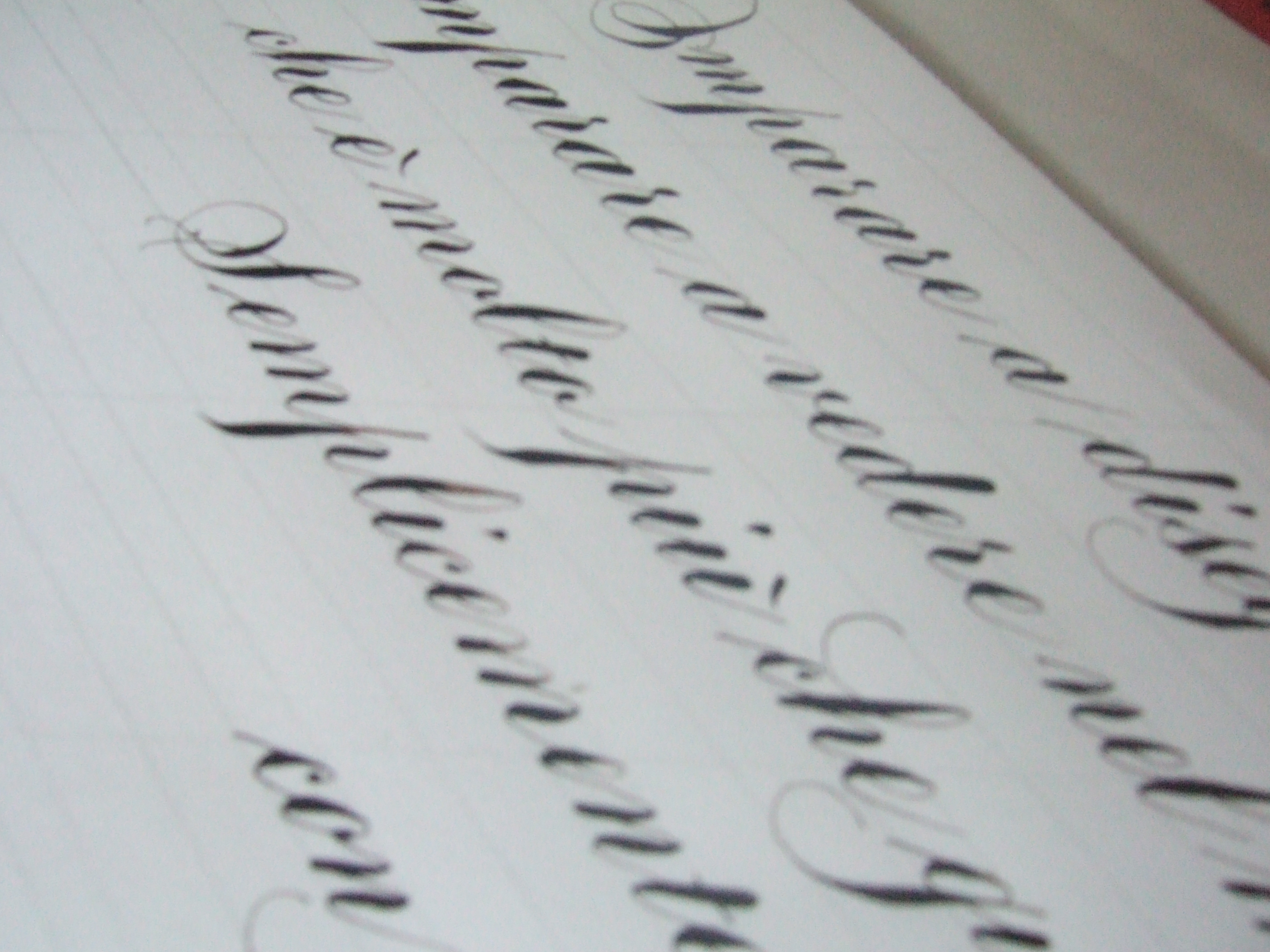 Uso la stilografica (anche per l'Italico) e adoro il Corsivo inglese (ho anche provato ma l'artrosi mi ha fatto desistere). E' uno stile bellissimo, secondo me.