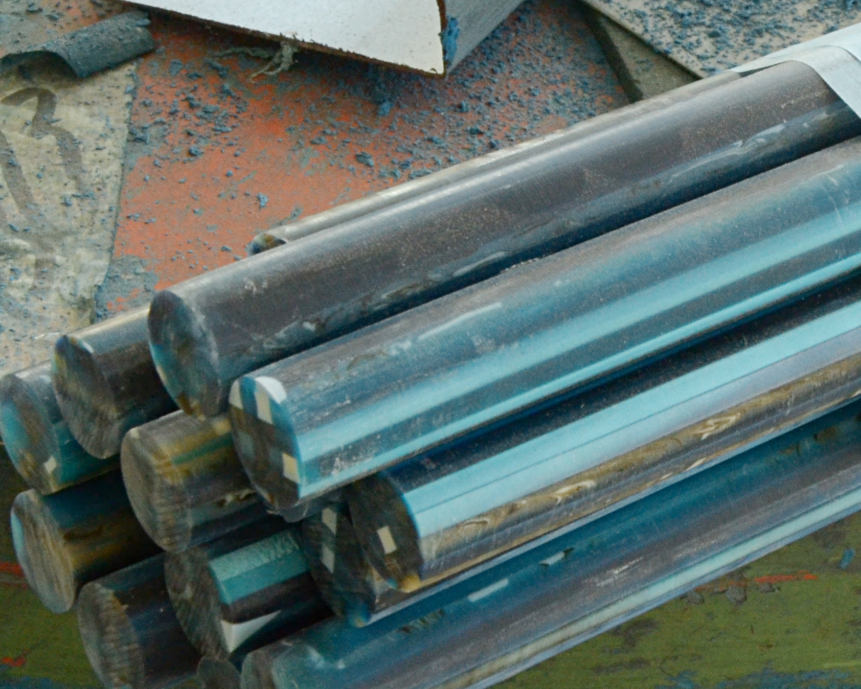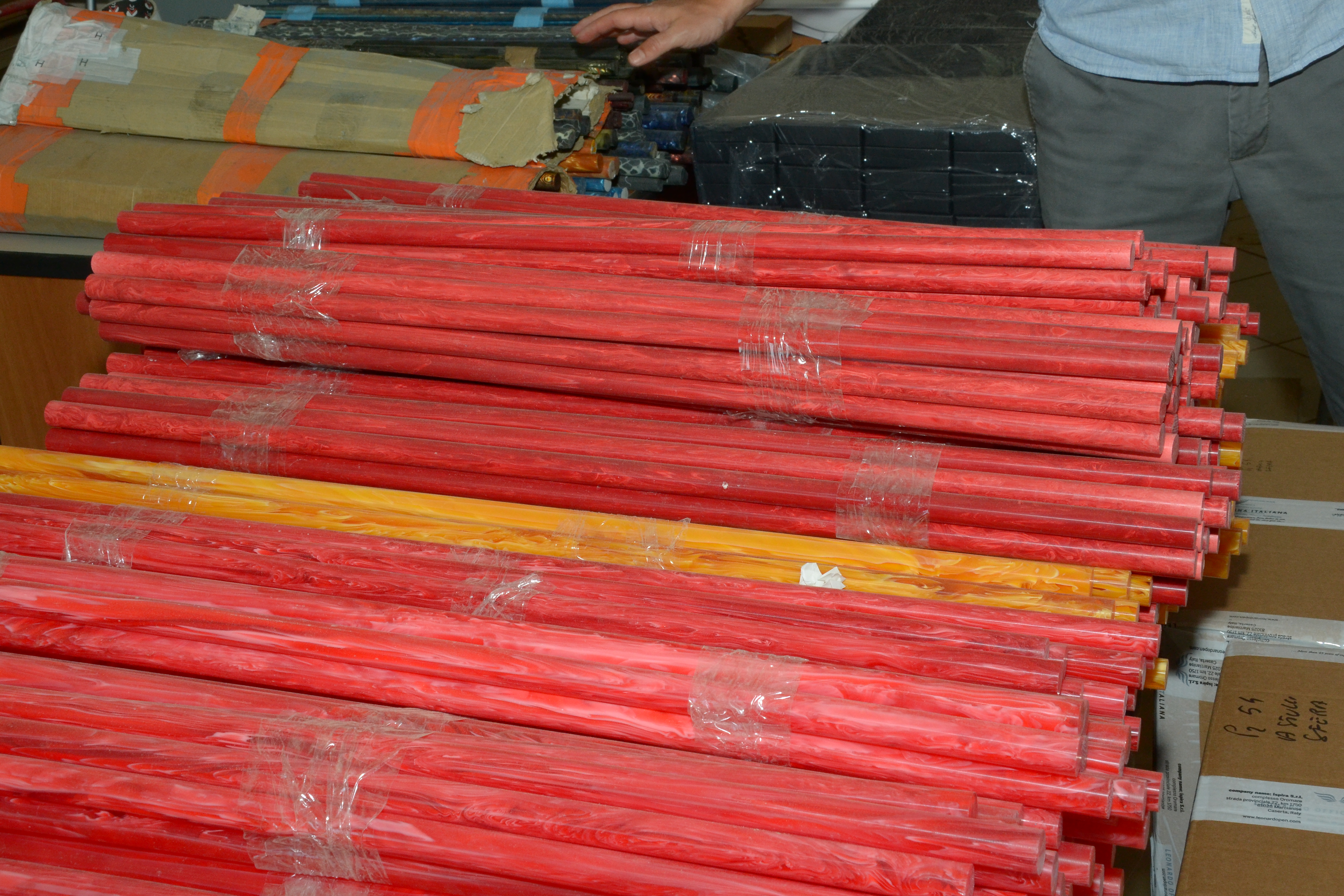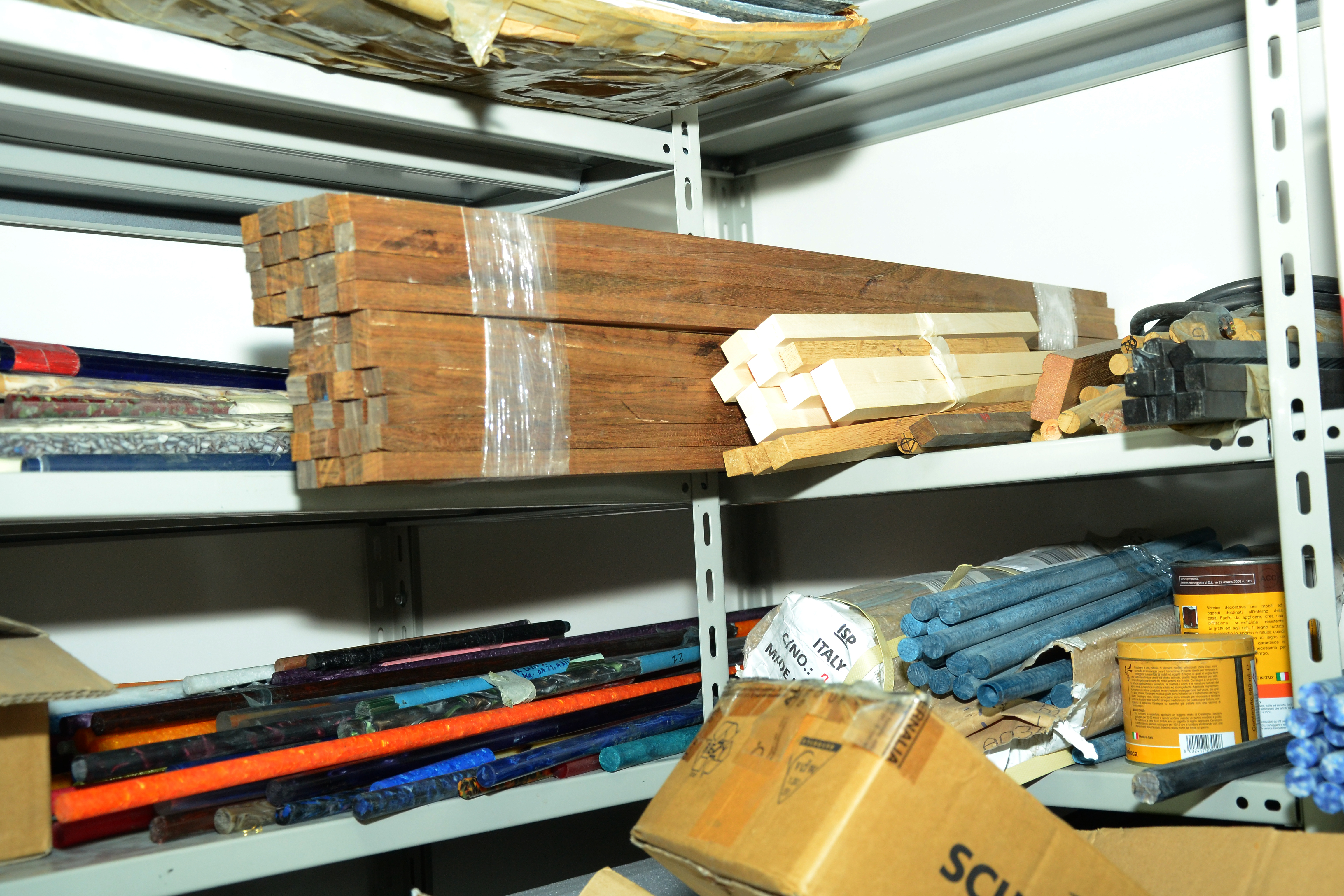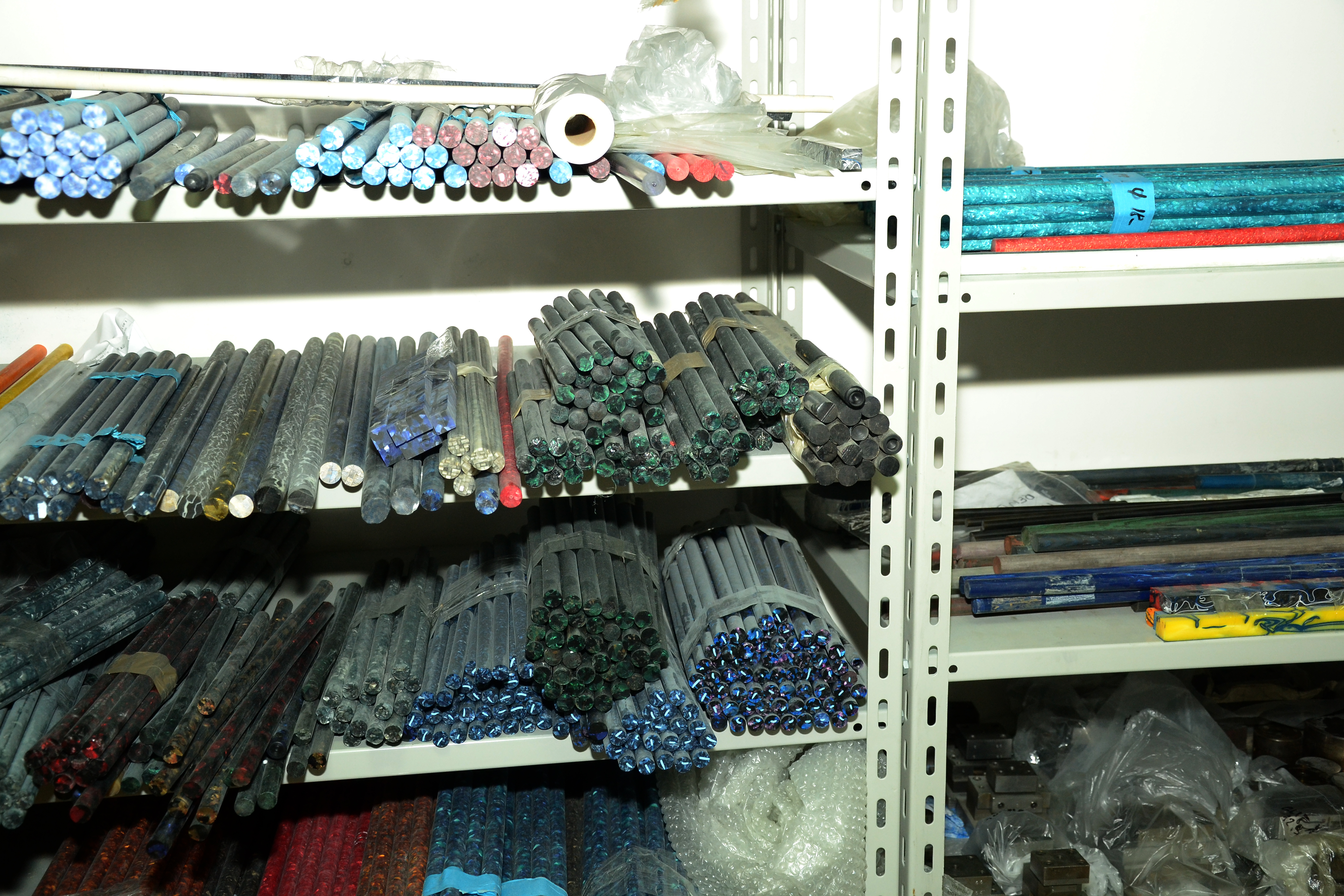 In una delle stanze ci sono delle scaffalature con le varie bacchette di tanti bei colori che serviranno a dare vita alle varie parti che costituiscono la penna.