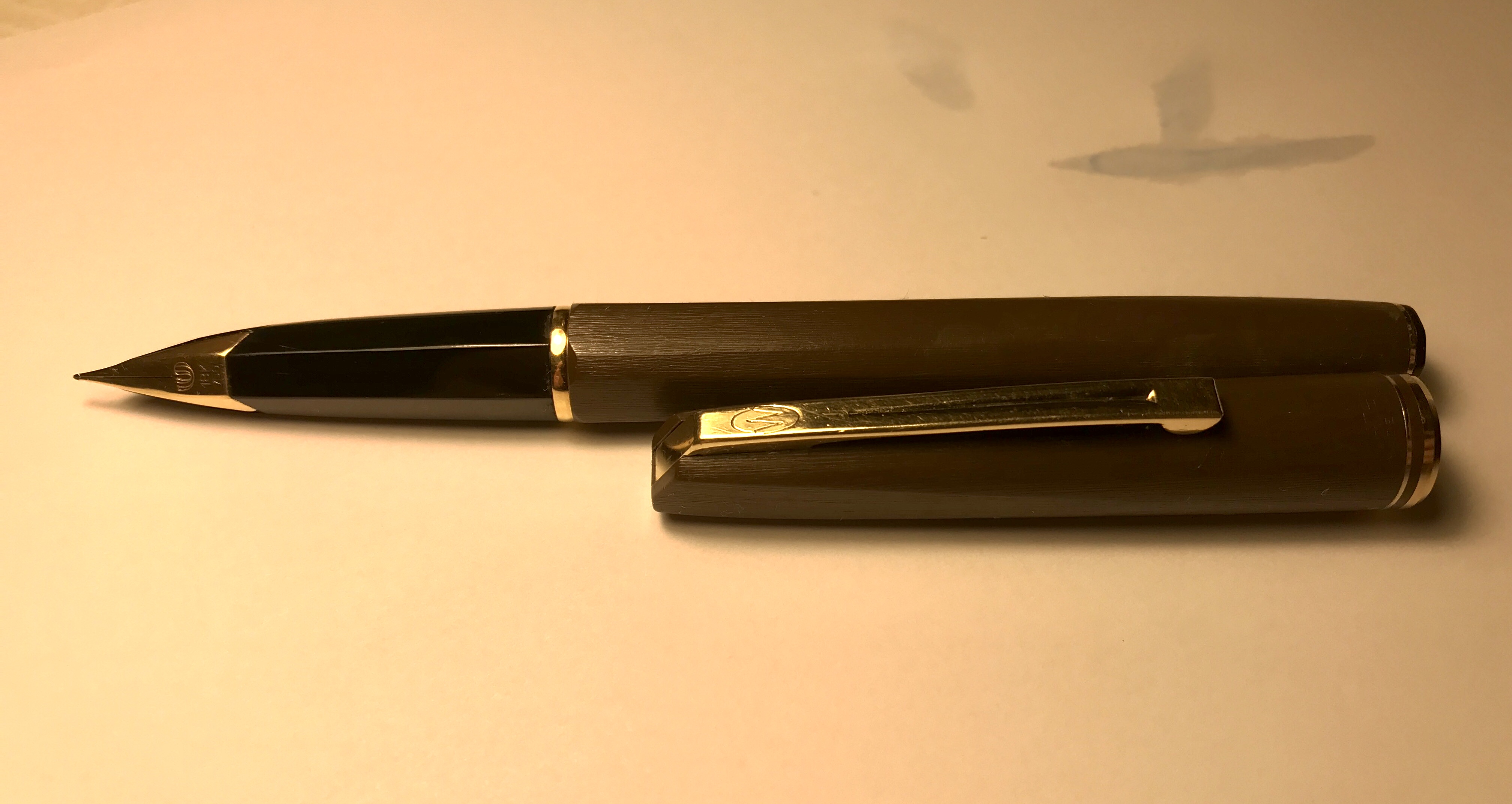 Ancora due richieste di identificazione, qualcuno le riconosce? Una ha inciso “Columbia Extra” sul corpo e “Columbia 18K” sul cappuccio (non Columbus ma Columbia appunto). L’altra è una Waterman in orrenda plastica marrone ma con pennino 18K 750. Scolastica anni 70 ?