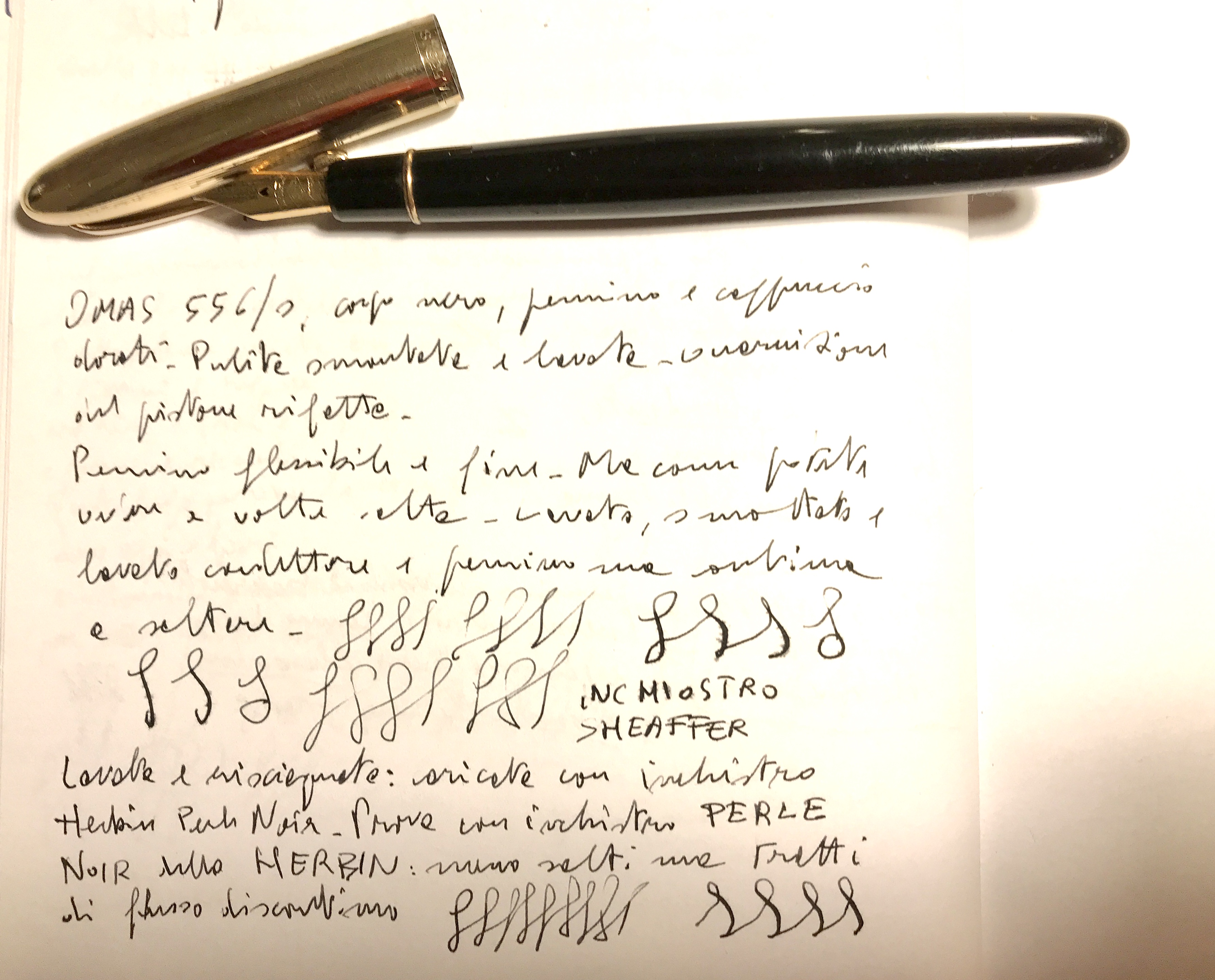 Sarà che ho cominciato a capirla, sarà (soprattutto) l’Aurora nero ma mi pare che vada molto meglio. Pennino molto fine e molto flessibile ... un’esperienza: io lascio com’è e non intervengo. Un domani si vedrà (superfluo aggiungere che ho una pessima calligrafia).