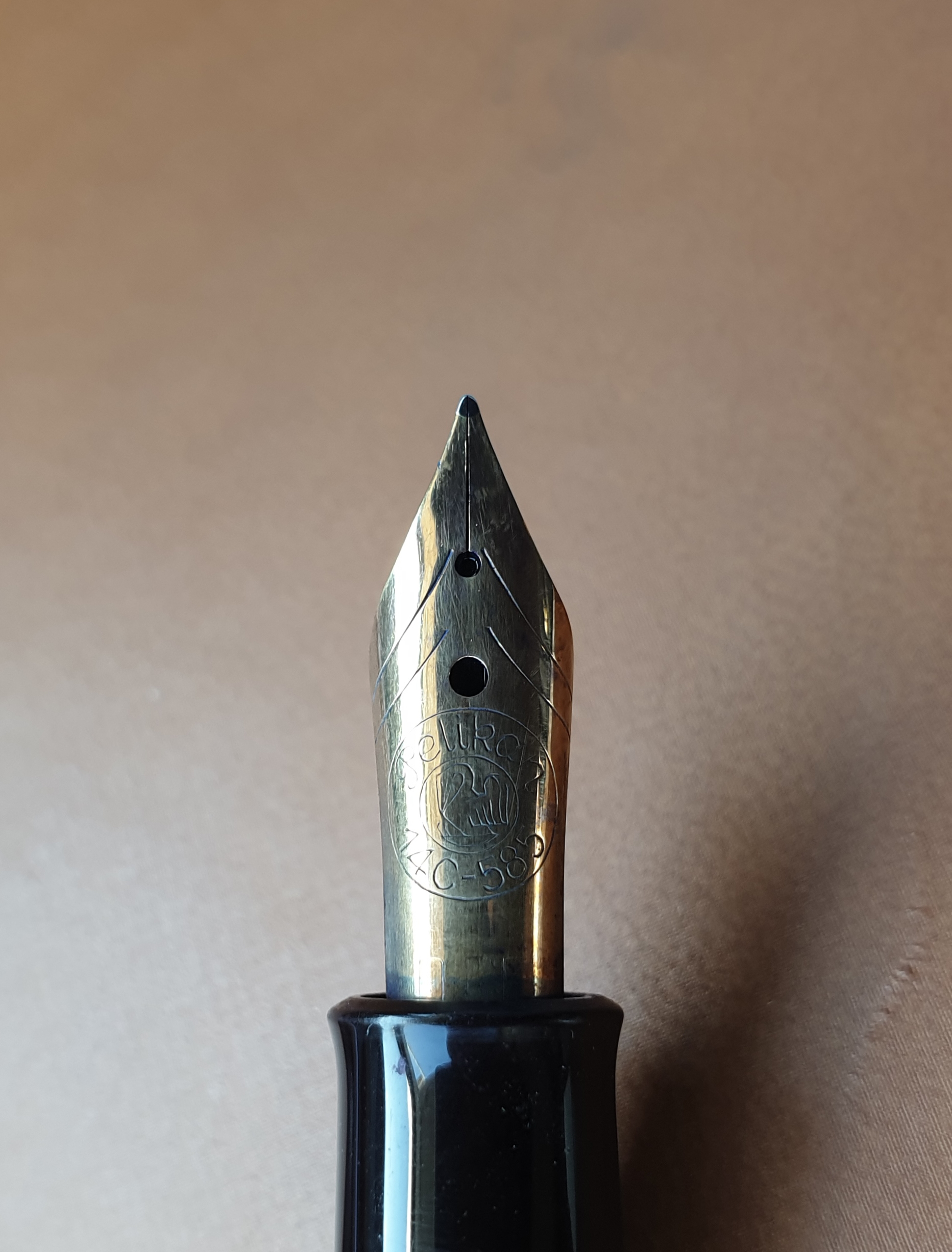 Salve a tutti, è la prima volta che scrivo qui e vorrei porre una domanda ai più esperti di voi. Ho appena acquistato una Pelikan 400 (dovrebbe essere una versione NN), ed ho constatato che il pennino, oltre a non avere l'indicazione della gradazione di tratto, ha due fori di aerazione anziché uno come avviene di solito. Cosa mi sapete dire a proposito? È una versione speciale o è una modifica del pennino originale? Vi ringrazio anticipatamente.