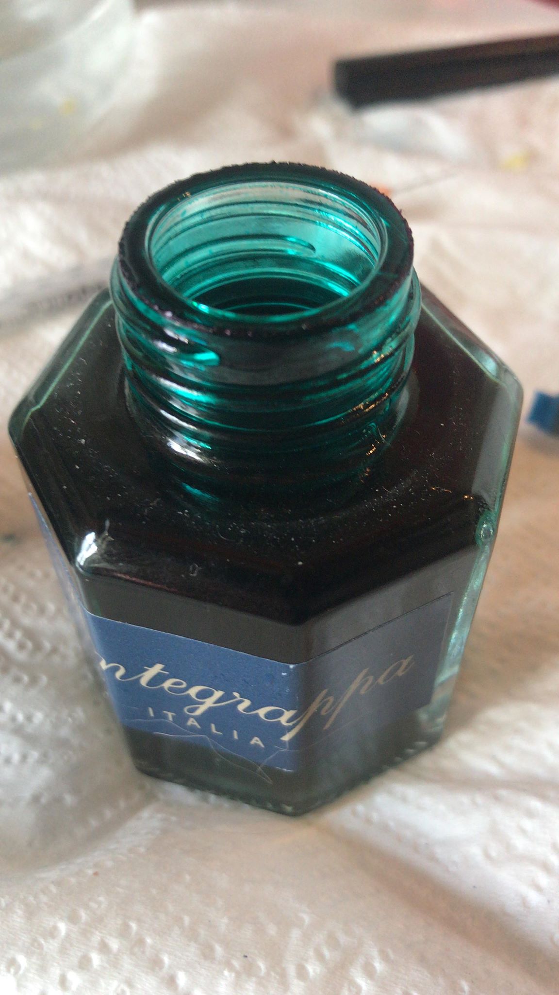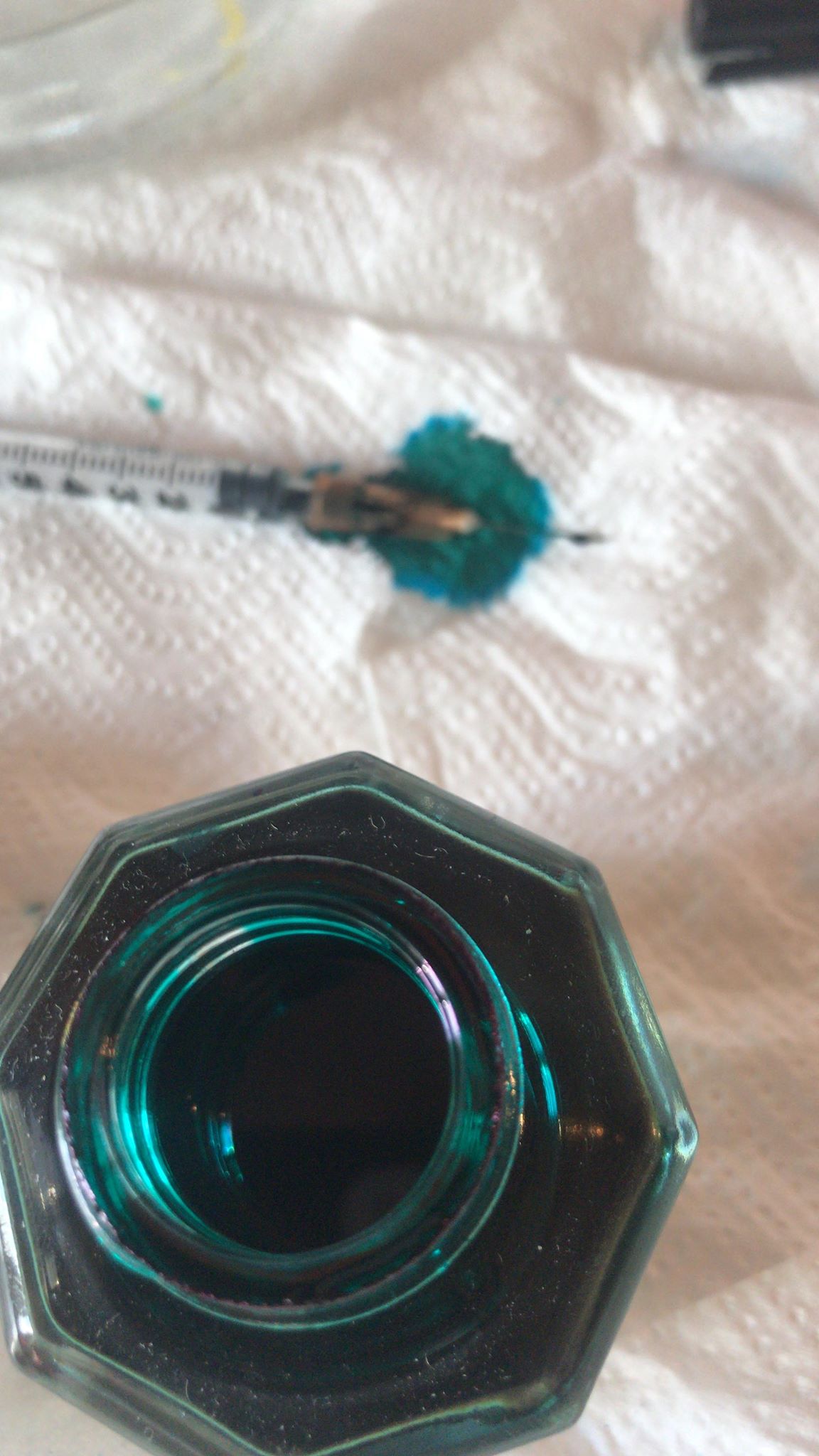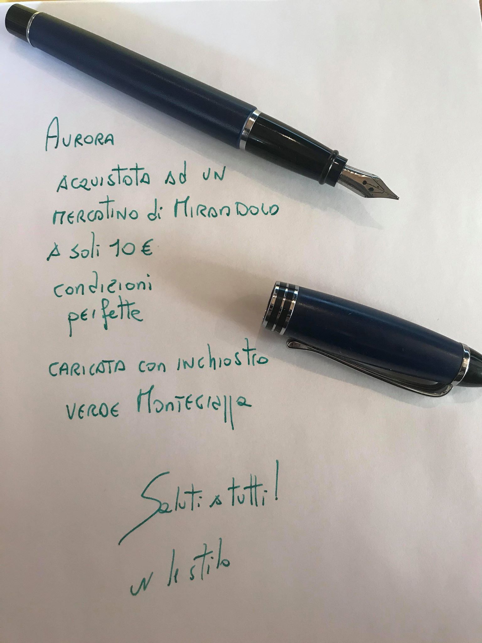 una volta a casa ho pulito la nuova aurora e ho siringato la cartuccia con l'inchiostro verde montegrappa!