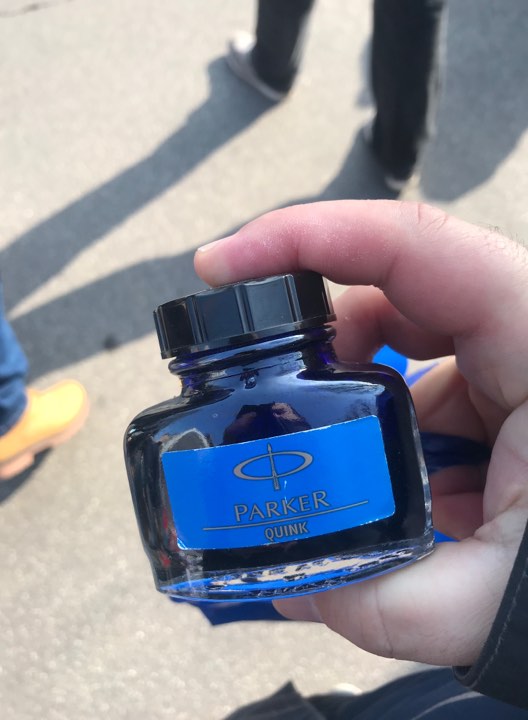 e poi un boccetta di inchiostro Parker blu... "che il tipo sul banco mi ha detto costa tre euro!... pensa sono 2 anni nessuno lo vuole" ...allora gli ho offerto 2 euro e l'ho portato a casa!