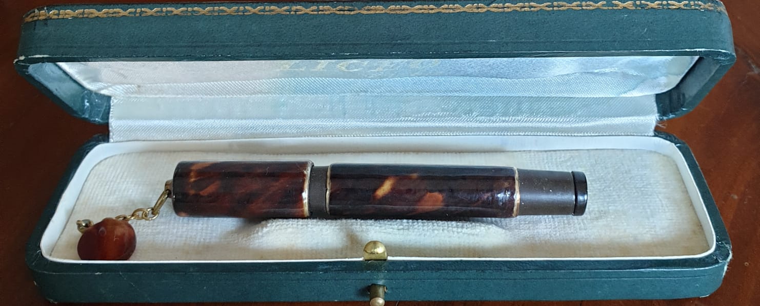 Waterman's 42 1/2 V in ebanite, rivestita in tartaruga. Stilografica, per ora, totalmente inedita.