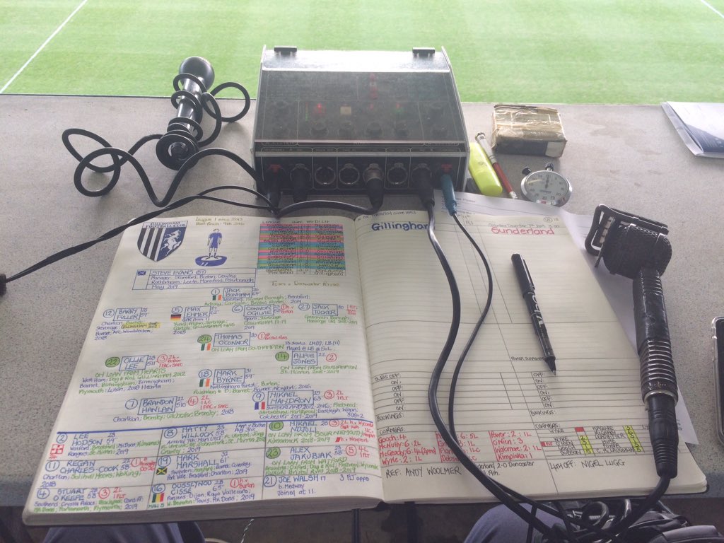 Non se e quanto sia bravo come radiocronista, ma di certo i suoi resoconti scritti delle partite sono particolarissimi. Non utilizza obbligatoriamente stilografiche (anche se in qualche foto si vedono), ma il suo lavoro mi sembra meritevole di essere visto.