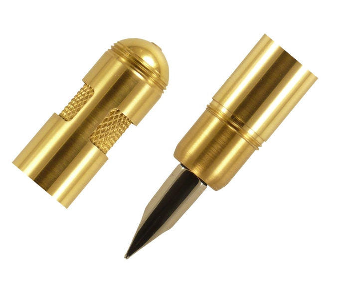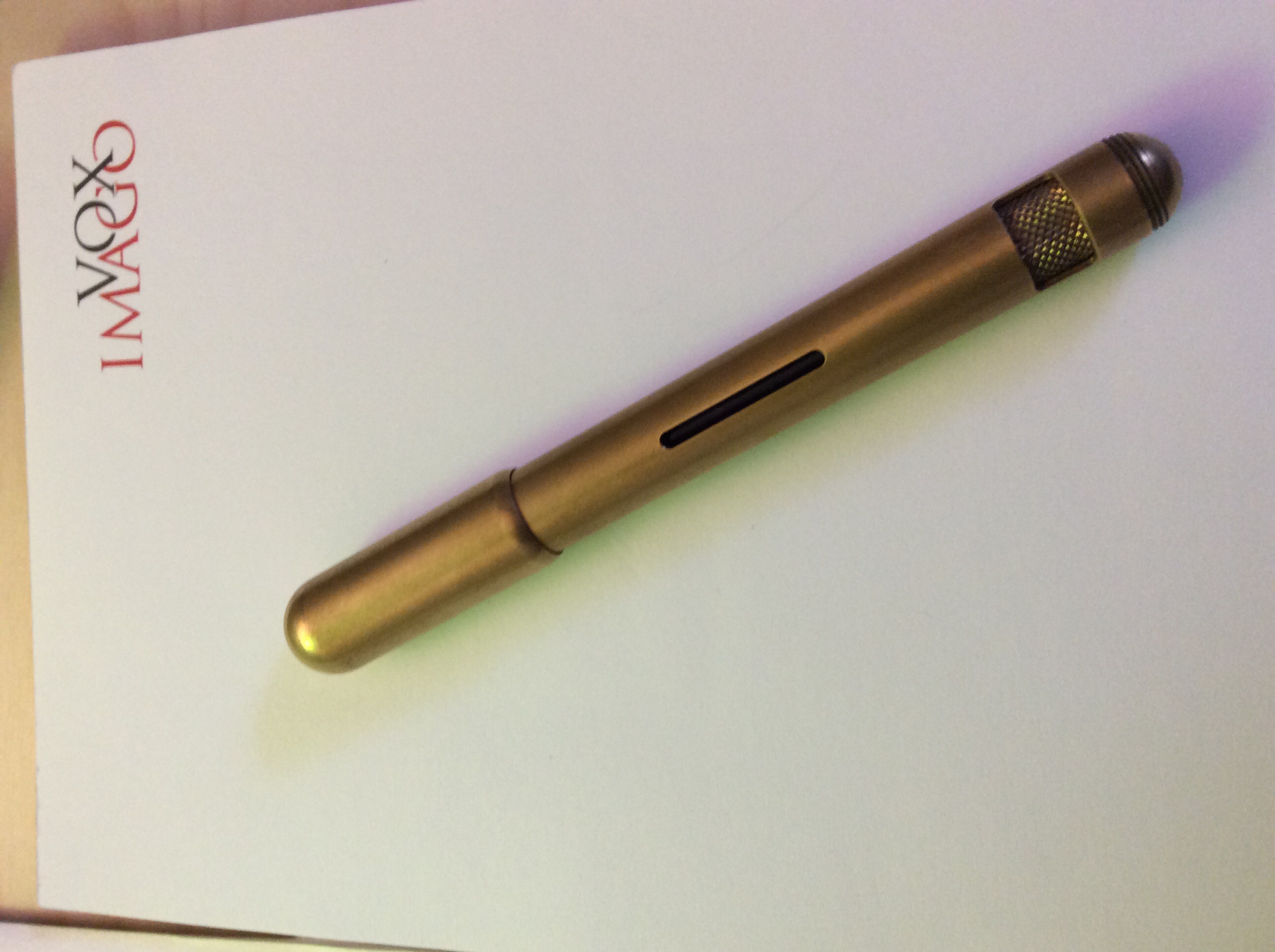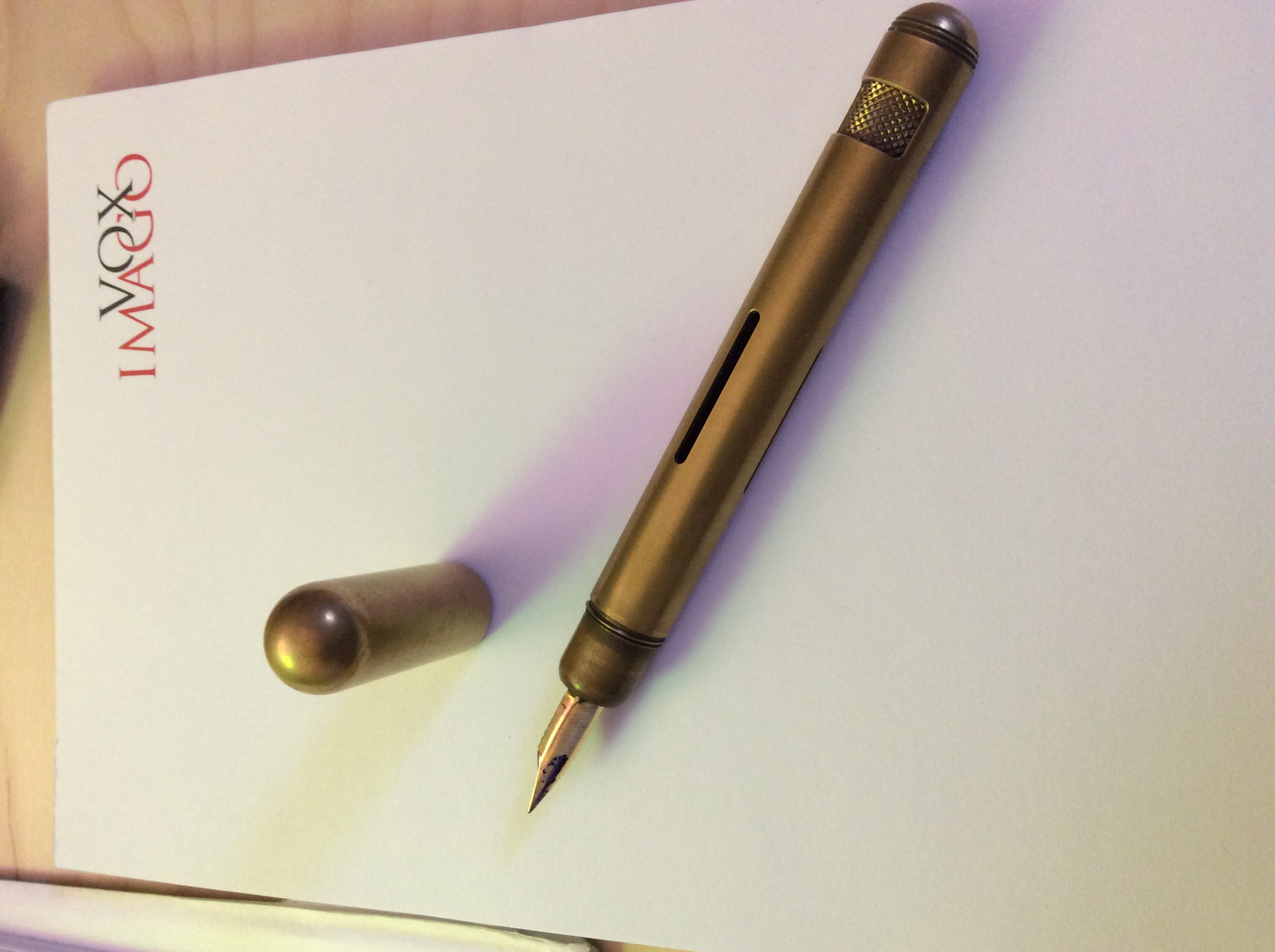 La penna che recensirò oggi è una Loclen Electa. La Loclen (http://www.loclen.com) è una azienda italiana che ha visto la nascita dei suoi prodotti attraverso la piattaforma di crowdfunding di Kickstarter (https://www.kickstarter.com/projects/59 ... ta?lang=it). La Loclen infatti ha visto la luce grazie a una sottoscrizione che ha portato alla sua realizzazione. Vediamo insieme le caratteristiche particolari: si tratta di una penna cosiddetta bullet. La sua caratteristica principale è che è realizzata almeno nel modello in mio possesso completamente in ottone (erano previste altre finiture tra cui cromata, ramate e chrome black). Il fusto presenta aperture da cui si vede il converter interno. Il converter ha applicato sulla sommità un meccanismo che ne permette il controllo dall’esterno grazie ad altre due finestre sul fondo del fusto e tale meccanismo, opportunamente ruotato, permette il carico e lo scarico dell’inchiostro. Il cappuccio è senza clip (o meglio la clip mi è parso di capire che può essere ordinata a parte) e si può avvitare comodamente sul fondo (anche se in questo modo la penna diventa eccessivamente pesante). La sezione è estremamente corta ma la filettatura di chiusura non dà fastidio durante la fase di scrittura. Il pennino il mio possesso è un F ma si può scegliere una qualunque altra gradazione (piccola annotazione: il mio e “a freccia” ma si può scegliere anche un pennino Jowo normale) Particolarità della penna è che la sezione è inserita nel fusto a pressione e la tenuta della chiusura(che nelle penne normali a converter/cartuccia solitamente è a vite) è garantita da tre anellini di gomma che oltre a regolare la chiusura della penna garantiscono anche (secondo le indicazioni del costruttore) un sistema di ammortizzamento in fase di scrittura. In fase di realizzazione la penna aveva un costo ragionevole, ora nel momento in cui invece la si va prendere in negozio, qualora la si trovi, il costo lievita e non la si può proprio definire una penna economica a maggior ragione considerando anche la presenza di un pennino placcato. Detto ciò la penna è strepitosa dal punto di vista della scrittura, estremamente comoda, compatta. Nonostante sia fatta in un materiale pesante questo non affatica la mano in fase di lavoro e anzi il peso da una sensazione di solidità. Dal momento in cui l’ho ricevuta non ho smesso di usarla. Attualmente è caricata con il Noodler’s Polar Purple.