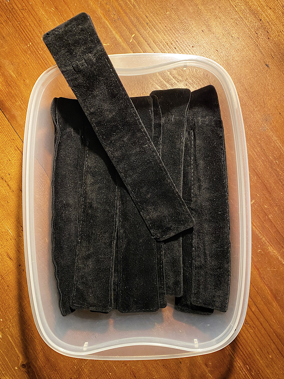 Ho usato del semplice panno LENCI, nell'ottica di usarlo solo per riporre le penne, non per trasportarle (questo ha 12 posti).