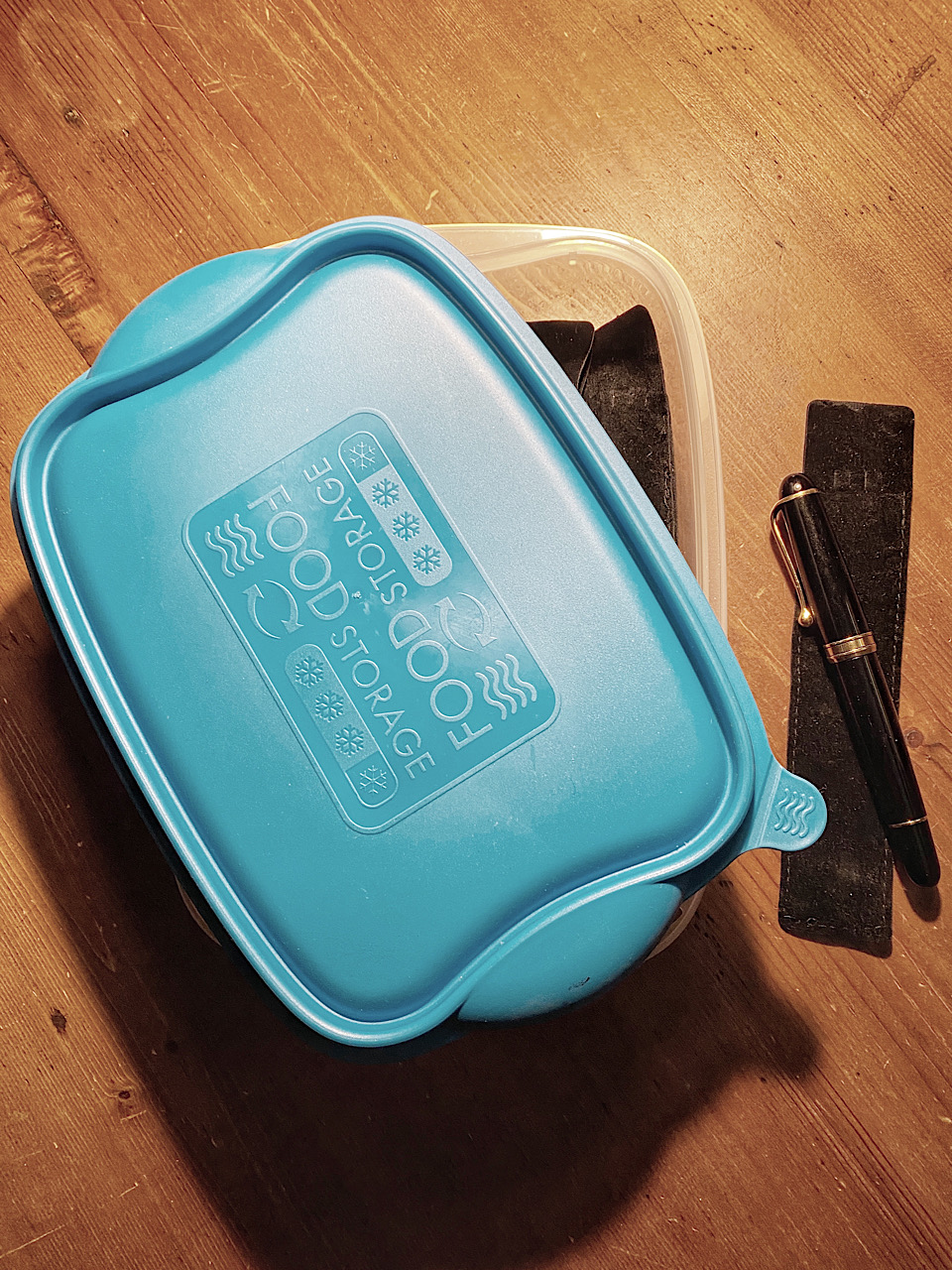 Scatola scoperchiata nel cassetto come contenitore quotidiano.