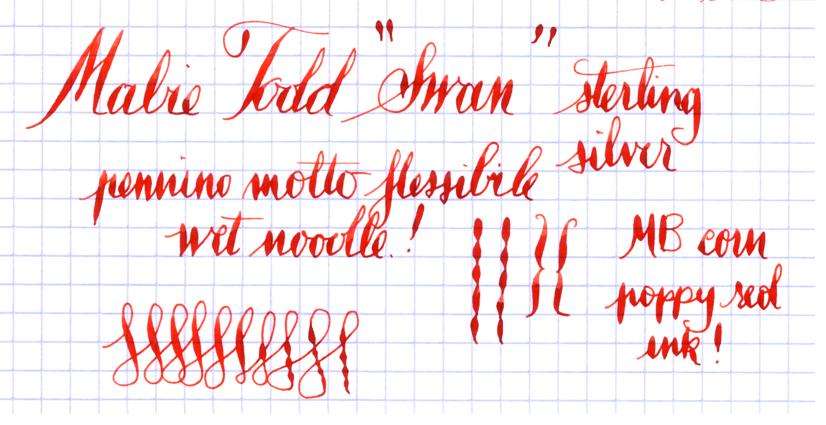 Proprio così, il pennino è abbastanza slanciato, ma ad essere sinceri non più di altri nel complesso. Ciò che è particolare e ha sempre attirato la mia attenzione è il taglio che è davvero molto lungo e si ferma posteriormente, oltre la fine delle spalle dei rebbi. Questo è un piccolissimo segreto :shh: che permette di riconoscere a vista i wet noodle e distinguerli dai flessibili normali o dai rigidi, ma attenzione, vale solo per i pennini Mabie Todd e solo per la produzione di New York; infatti pennini di altre marche, per rimanere tra i flessibili cito i Waterman, non sono per nulla in grado di riconoscerli li trovo molto diversi come forma e "meccanismo" con cui flettono.