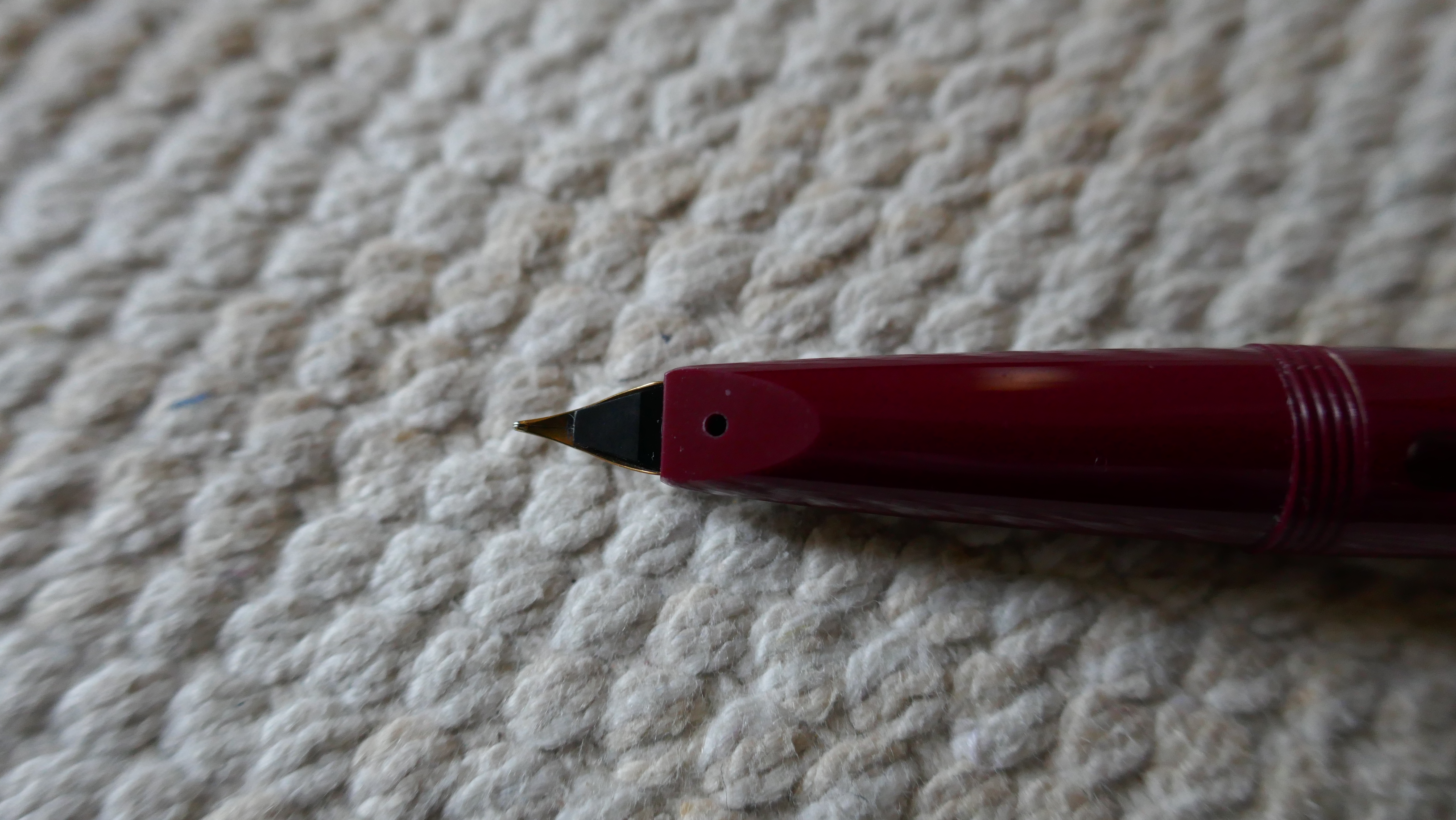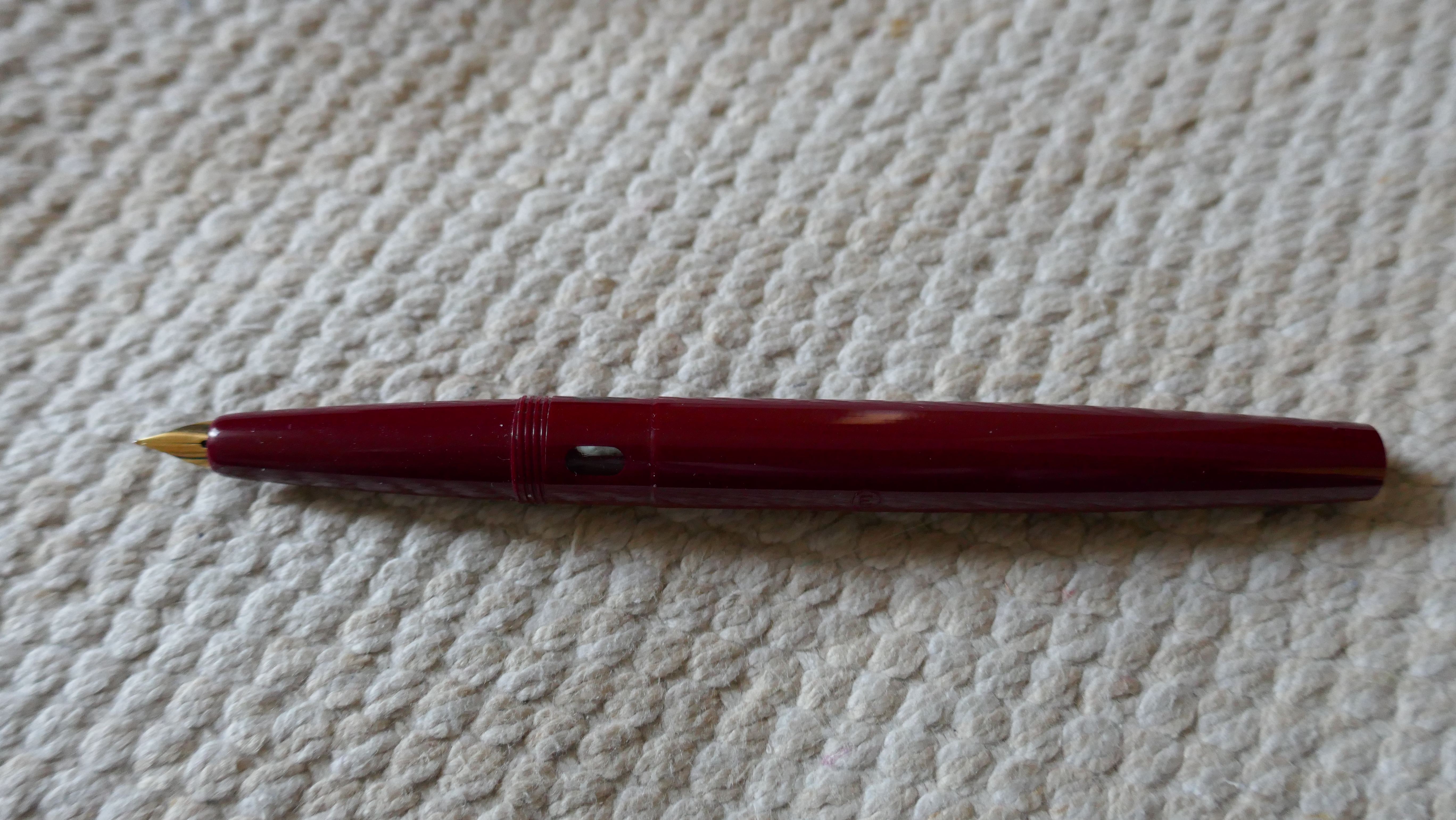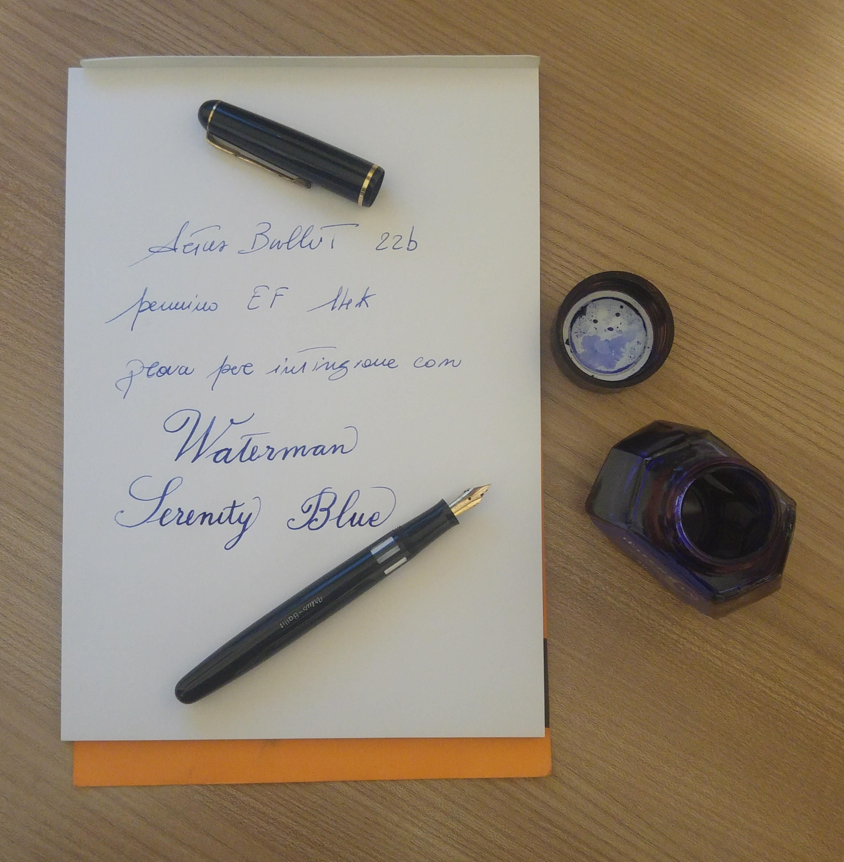 Secondo me ogni penna fa storia a se, questa è la mia Artus, una Ballit 22b, una penna su cui stavo commettendo un tragico errore di valutazione: pensavo che non valesse la pena rimetterla in sesto. Quando la trovai aveva un crack sul cappuccio ed un piccolo solco più visibile sul fusto nella zona della finestra d'inchiostro, poi ho provato il pennino con maggior attenzione e ne sono rimasto completamente stregato. Con tanta pazienza, il meglio delle mie capacità e un po' di cianoacrilico, sono inaspettatamente riuscito a rimetterla a nuovo, e non me ne separerò più.