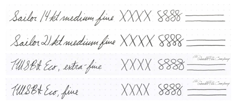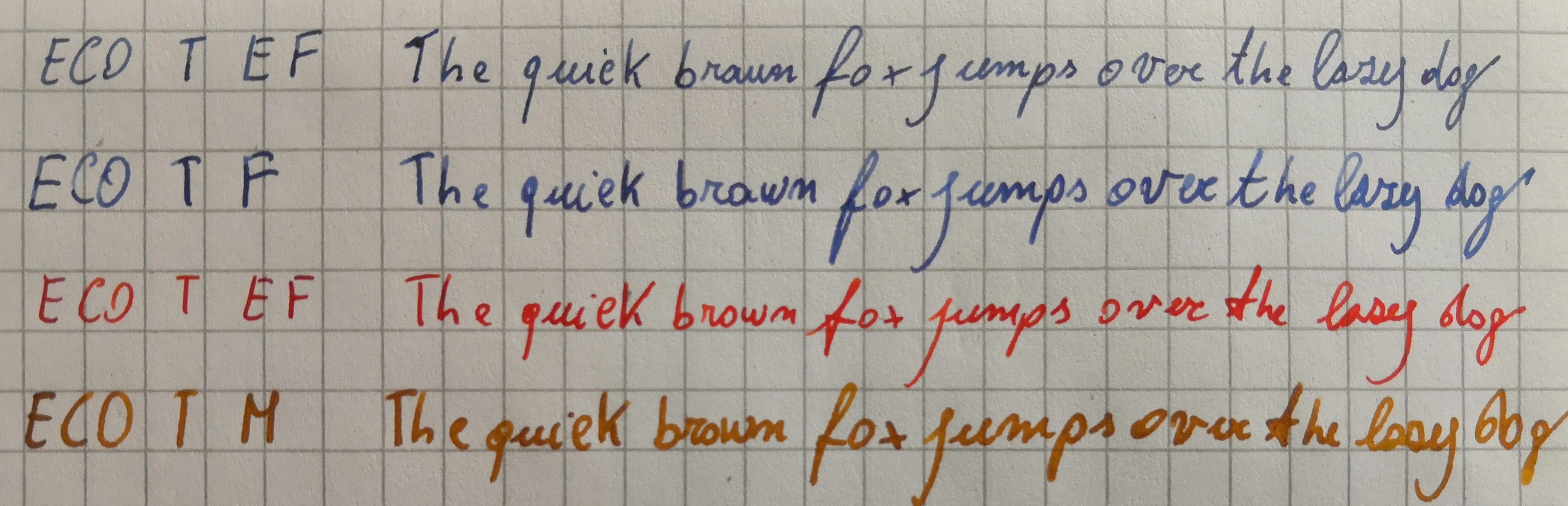 Io ho una stilografica che monta il jowo #6 tratto F e lo trovo molto simile al tratto M/F della sailor profit jr (che ha lo stesso gruppo scrittura della sailor lecoule quindi pennino in acciaio)