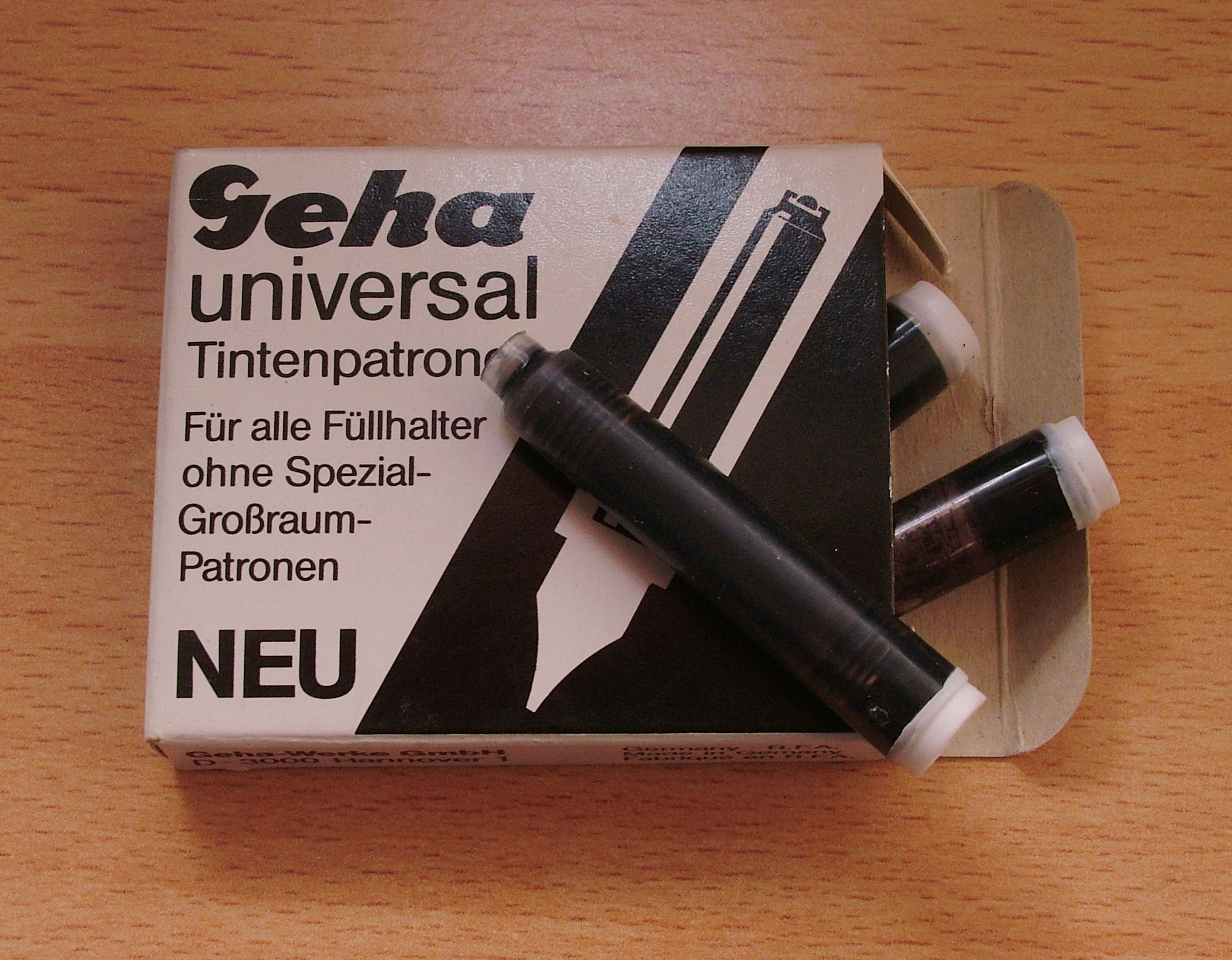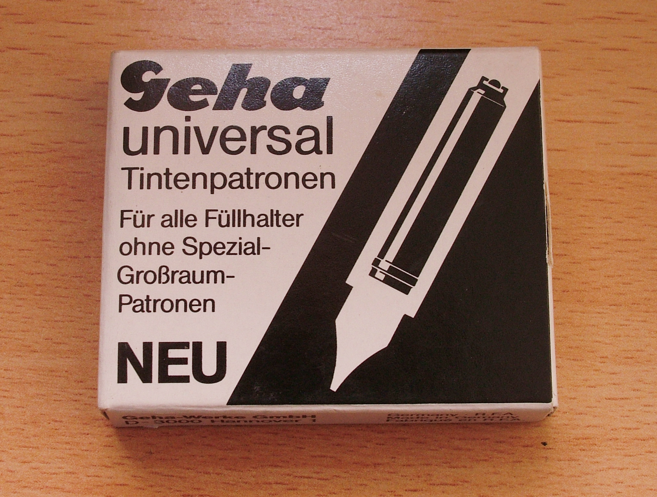 La soluzione non è "barocca" ma pratica. Geha e Pelikan erano i due marchi che all'epoca si contendevano il mercato delle penne scolastiche - in questo chiedo aiuto agli storici della penna che in questo Forum sono tanti e ben informati - e ciasuno aveva standard di attaccchi per le cartucce diversi. Mentre Pelikan aveva le sue con il solo attacco per le proprie penne (che poi sarebbe diventato quello più usato, tanto da farlo definire universale), Geha aveva cartucce con il doppio "standard" e quindi aveva un mercato più vasto per i suoi ricambi