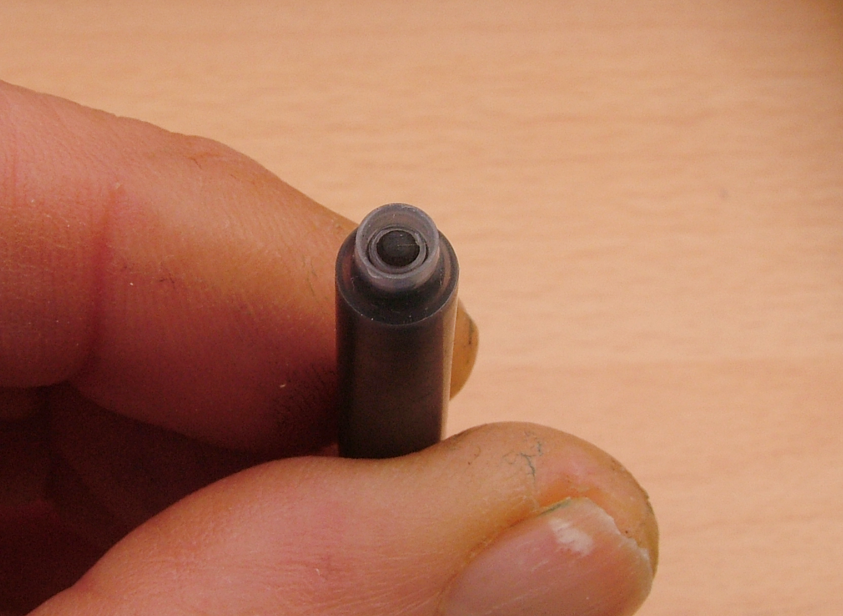 Se ho capito bene le istruzioni, la cartuccia veniva aperta dal fondo e non dall'imboccatura? Se è così, in linea di principio la penna poteva accettare cartucce di diversi standard purché ci stessero come dimensione, tanto il "colletto" non lo usava.