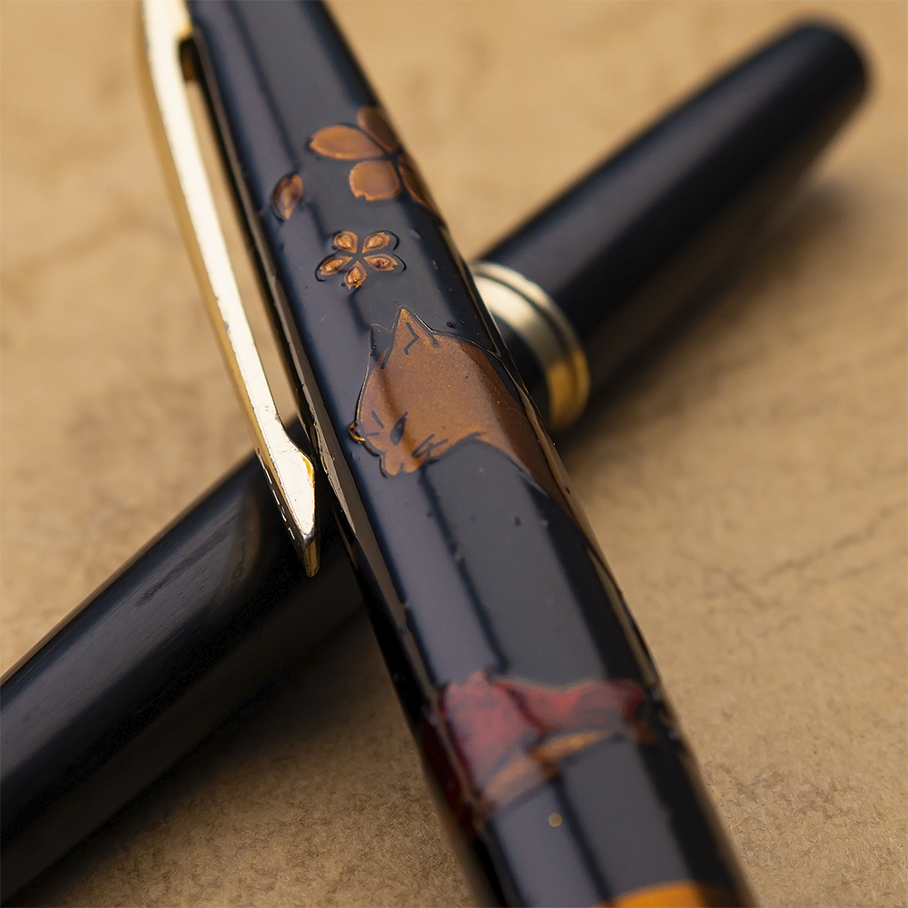 Io invece guardando questa penna (e altre simili a questa) e le moderne urushi maki-e vedo una differenza qualitativa, diciamo nelle finiture e nei colri del disegno molto importante tra queste e le ultime, le ultime sono (o a me sembrano) molto piu' rifinite e colorate. Mi sta venendo in mente che magari quello era il periodo in cui hanno seriamente iniziato a sperimentarci sopra sulle penne, perche' sia la laccatura urushi che i vari tipi di maki-e sono robe secolari