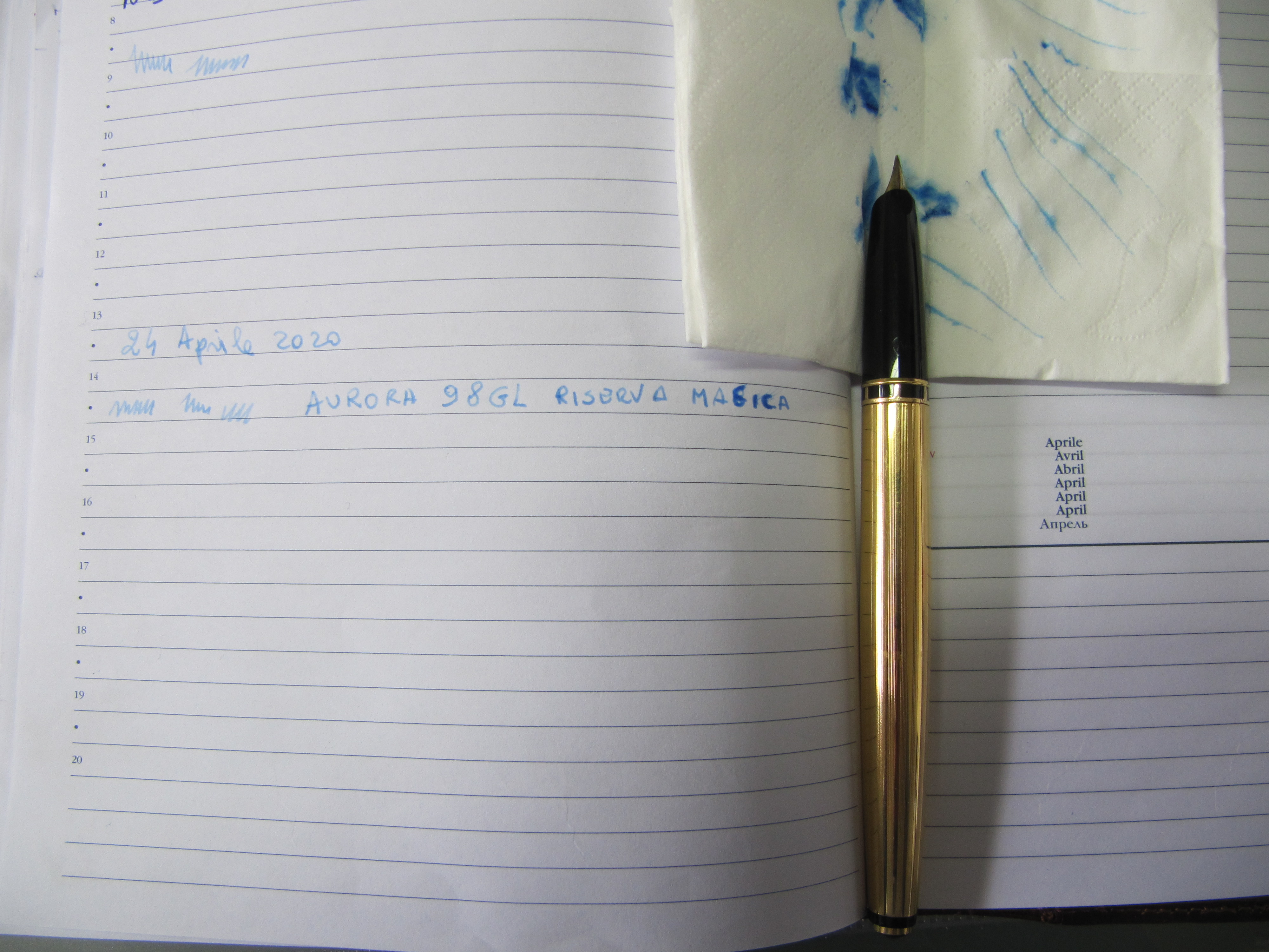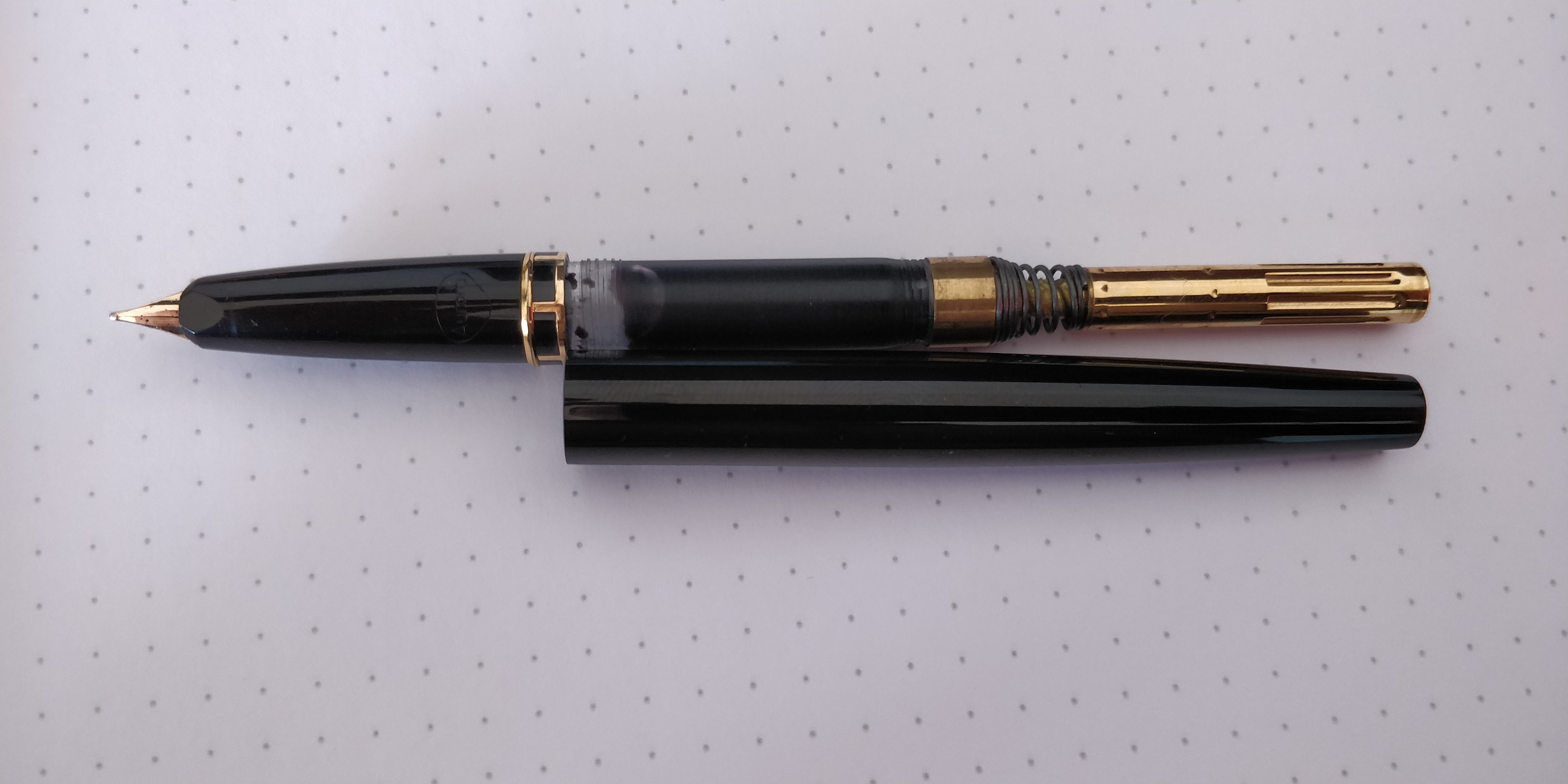 Premetto ancora che non riuscendo ad acquistare, in questi giorni di chiusura per emergenza Covid, una boccetta di inchiostro mi ero riproposto di caricare il serbatoio della penna con un inchiostro di china nero della Rotring utilizzato per i Rapidografh ricaricabili allorquando si doveva riportare a china su carta lucida le linee e le curve dei disegni tecnici. L'intento, ovviamente, non l'ho potuto portare a termine forse perché la stilografica potrebbe essere danneggiata. Devo segnalare inoltre che non riesco a svitare il fusto per cui non mi è possibile in alcun modo capire quale possa essere la causa del suo malfunzionamento (serbatoio danneggiato, guarnizioni scottate da un lungo inutilizzo e/o molla, ammesso che ve ne sia una, fuori sede). Sono ovviamente dispiaciuto poiché rimettere in funzione la Aurora 98 GL per me significherebbe molto.