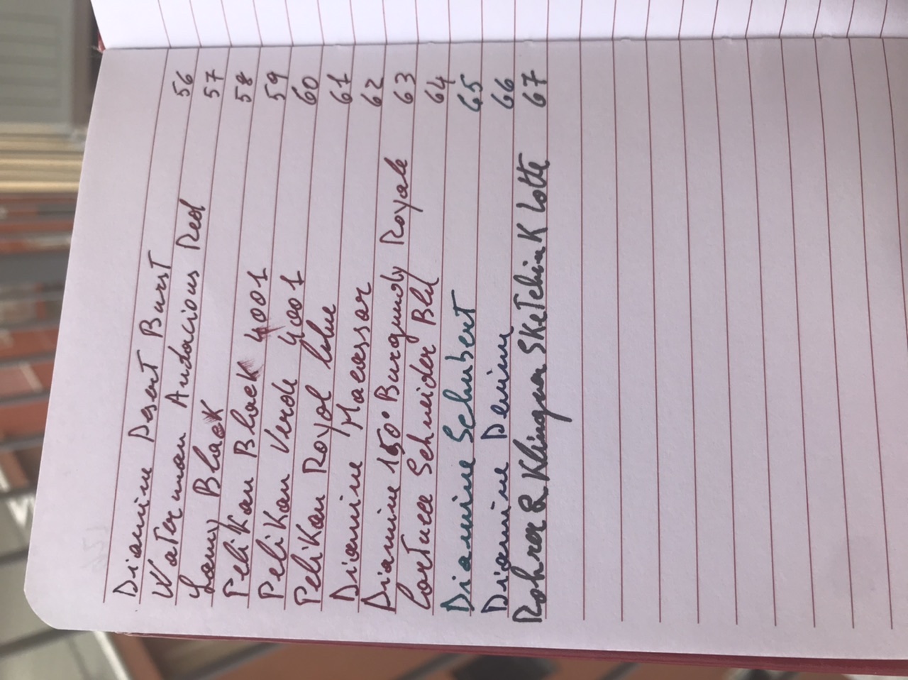 Sotto i vari inchiostro caricati scrivendo con quella penna e quell’inchiostro così in futuro vedrò il tipo di tratto che produce.