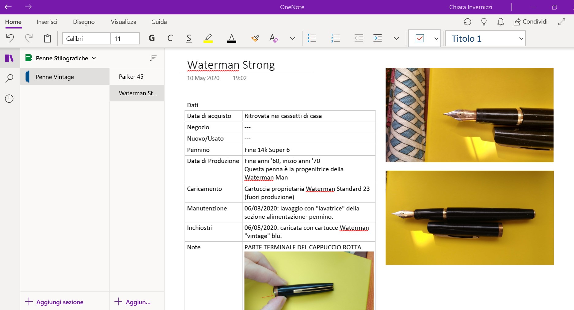 Se voglio "ricordarmi" come funziona un inchiostro, digito il nome dell'inchiostro nella funzione di ricerca di Notes e mi compaiono tutte le penne dove l'ho usato e relativo commento. Il vantaggio è che poi finisce tutto nel cloud e quindi è sempre sincronizzato.