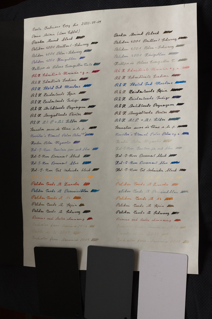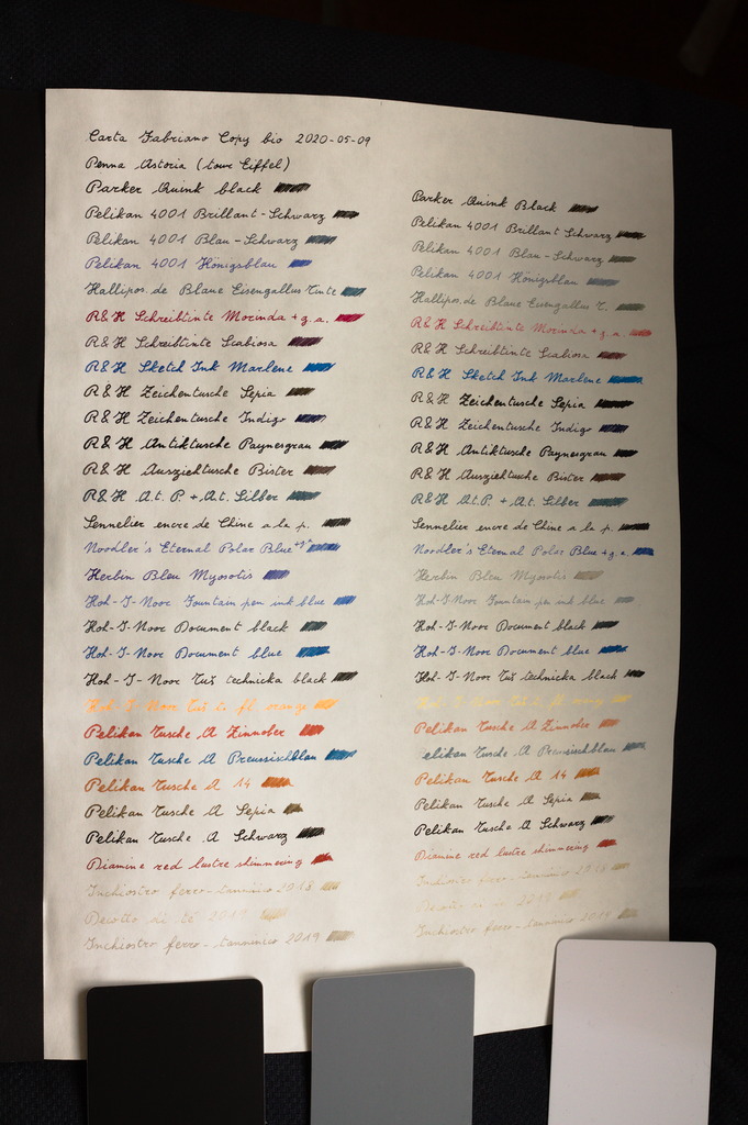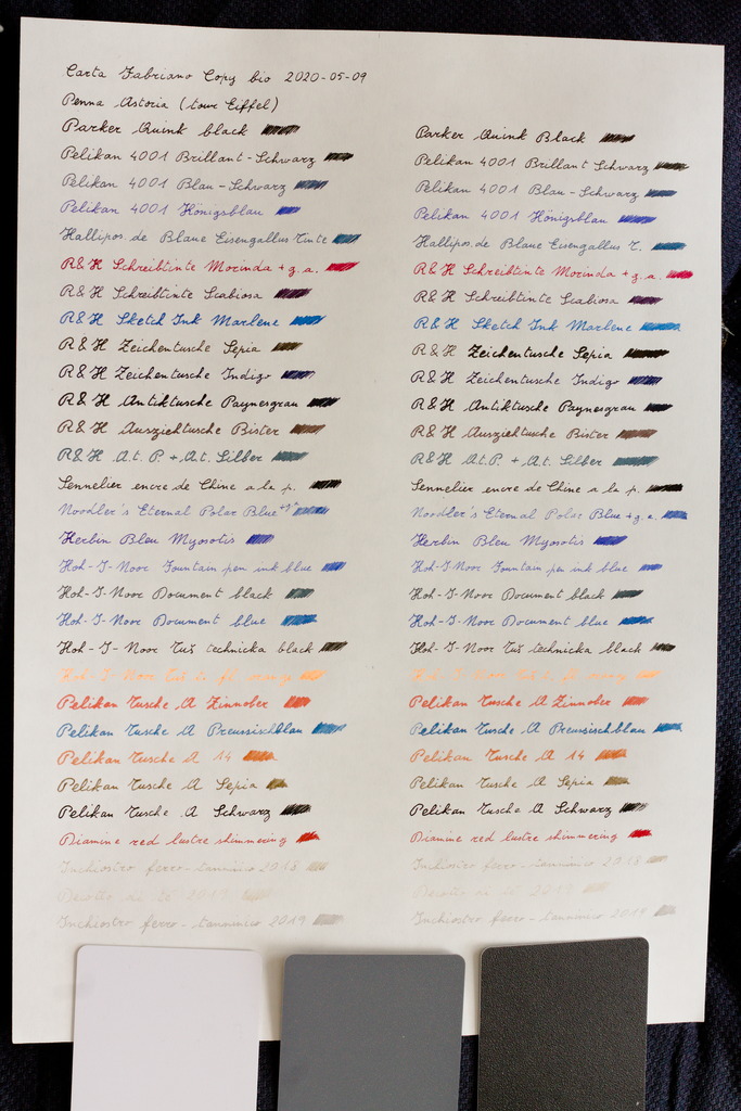 attenzione che l'orange fluo è inchiostro di china (così come il secondo nero), non è da stilografica. I due da stilografica con ottimo risultato sono i K-I-N document che effettivamente stanno avendo ottime prestazioni sotto tutti gli aspetti.
