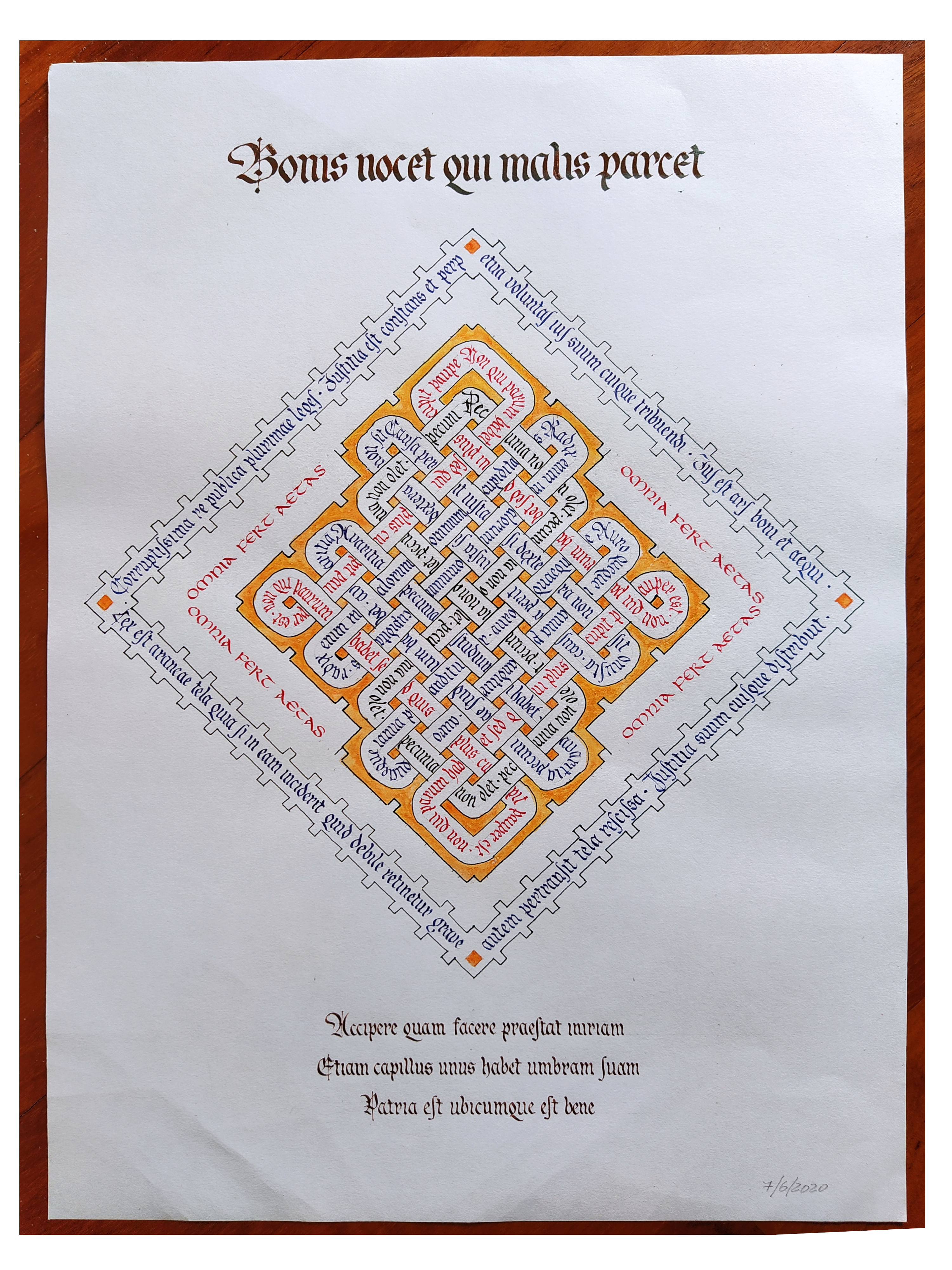 Potrei dire che se avessi posto attenzione e impegno nel fare le linee curve e nella scrittura incurvata, non lo considererei un bozzetto; devo anche dire che ci avessi messi l'impegno dovuto poteva anche risultare peggio di com'è: quando faccio qualcosa che considero una prova sono molto più rilassato e "disinvolto" e, proprio per questo può riuscire meglio (ad esempio, mi pare non aver saltato, stranamente, neanche una lettera)Automedonte ha scritto: ↑lunedì 8 giugno 2020, 11:07 Per carità se si guardano i particolari qualcosa potrebbe esserci ma, come visione d'insieme, è bellissimo così.