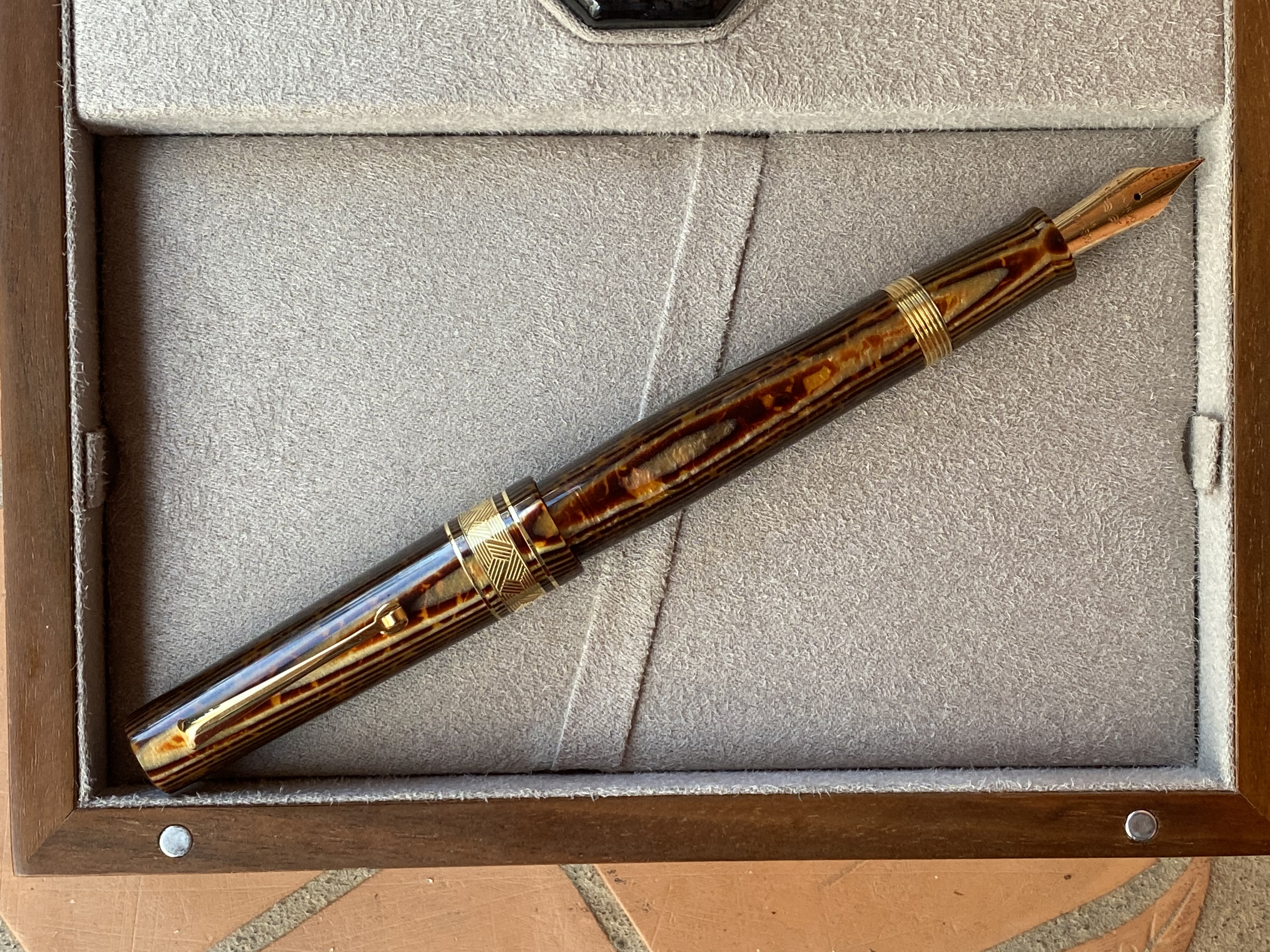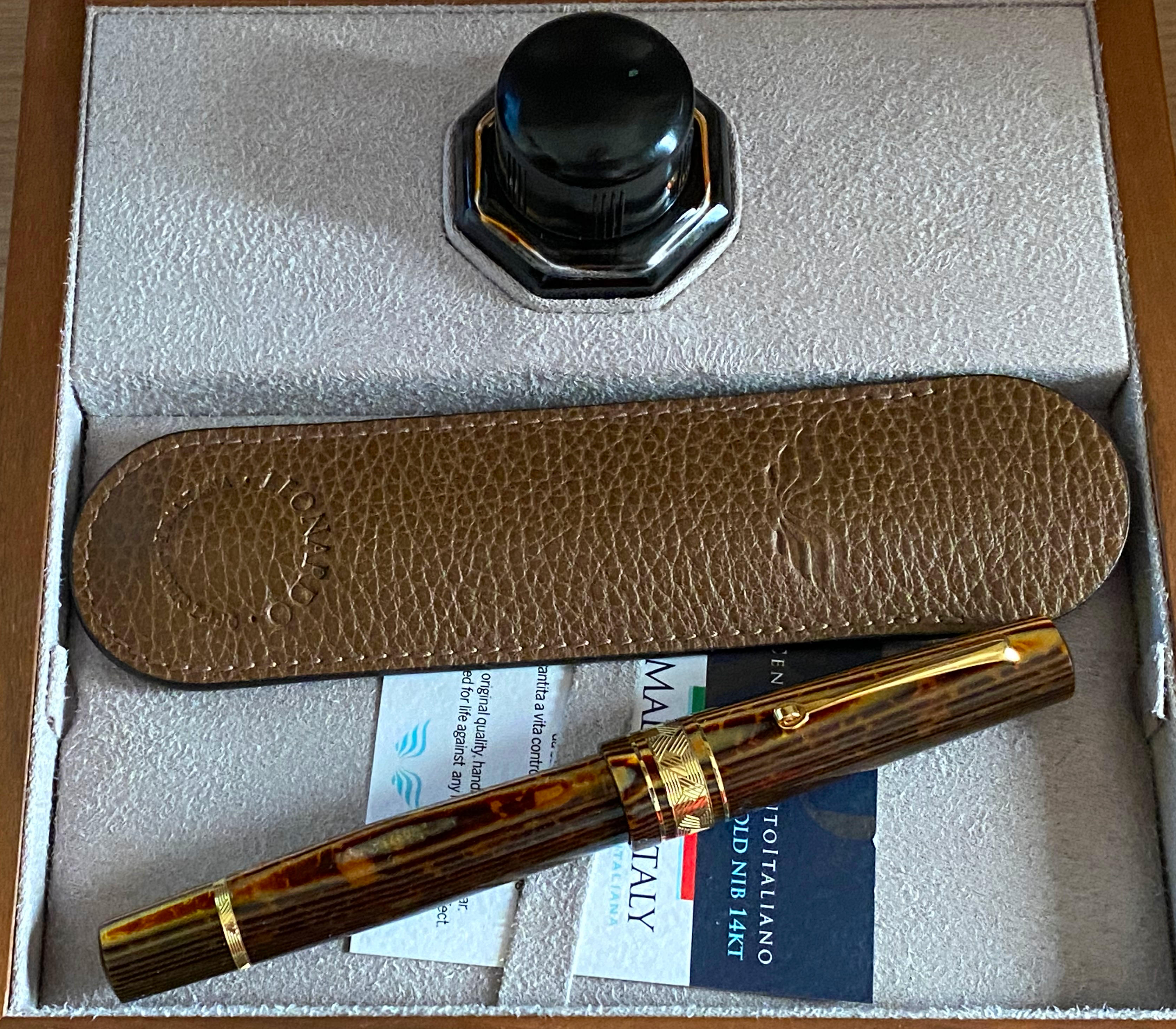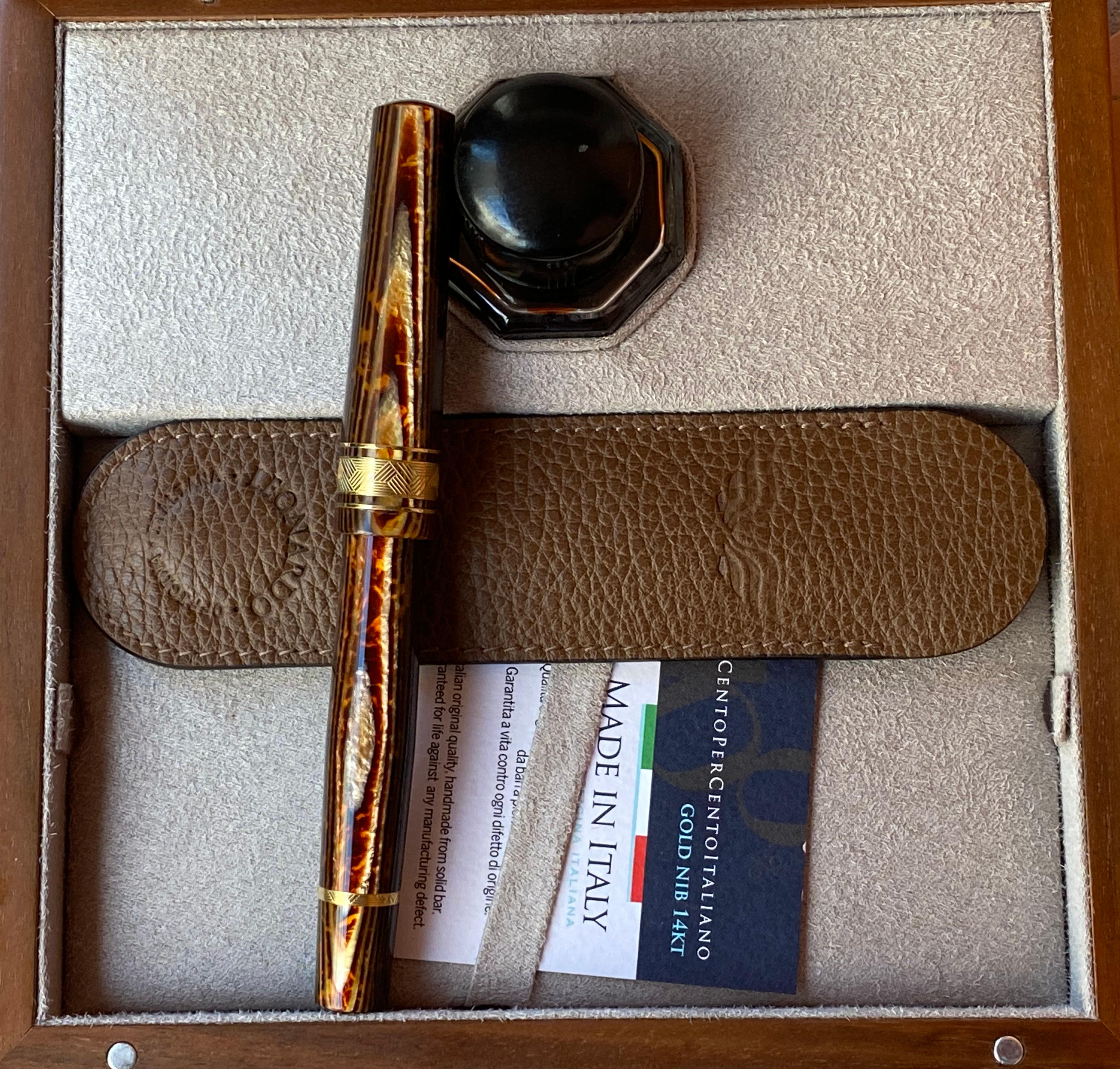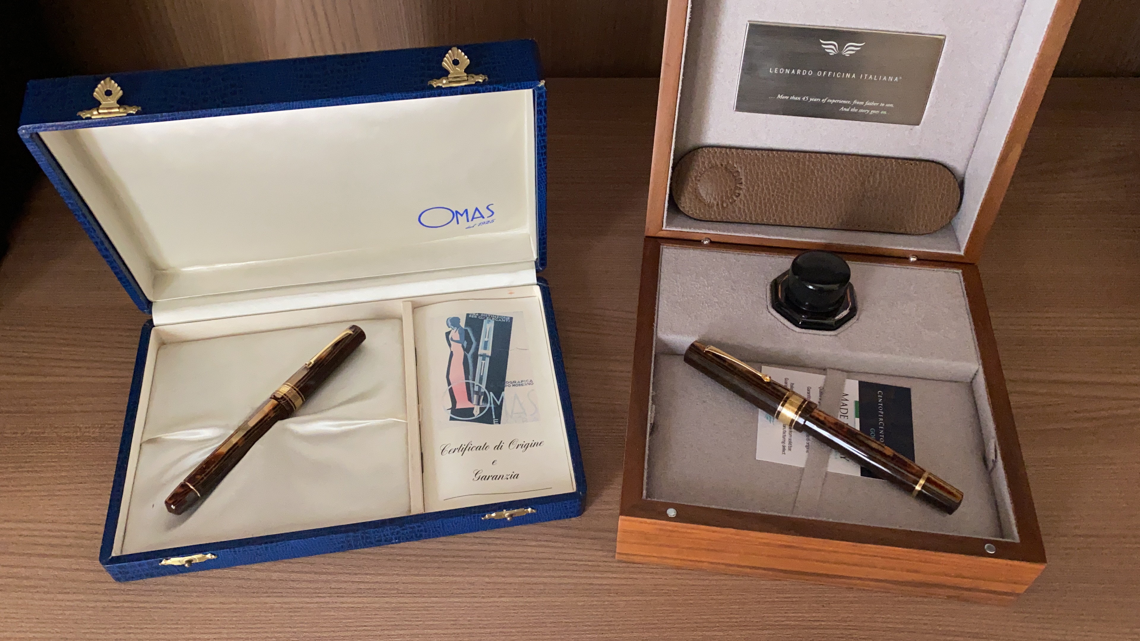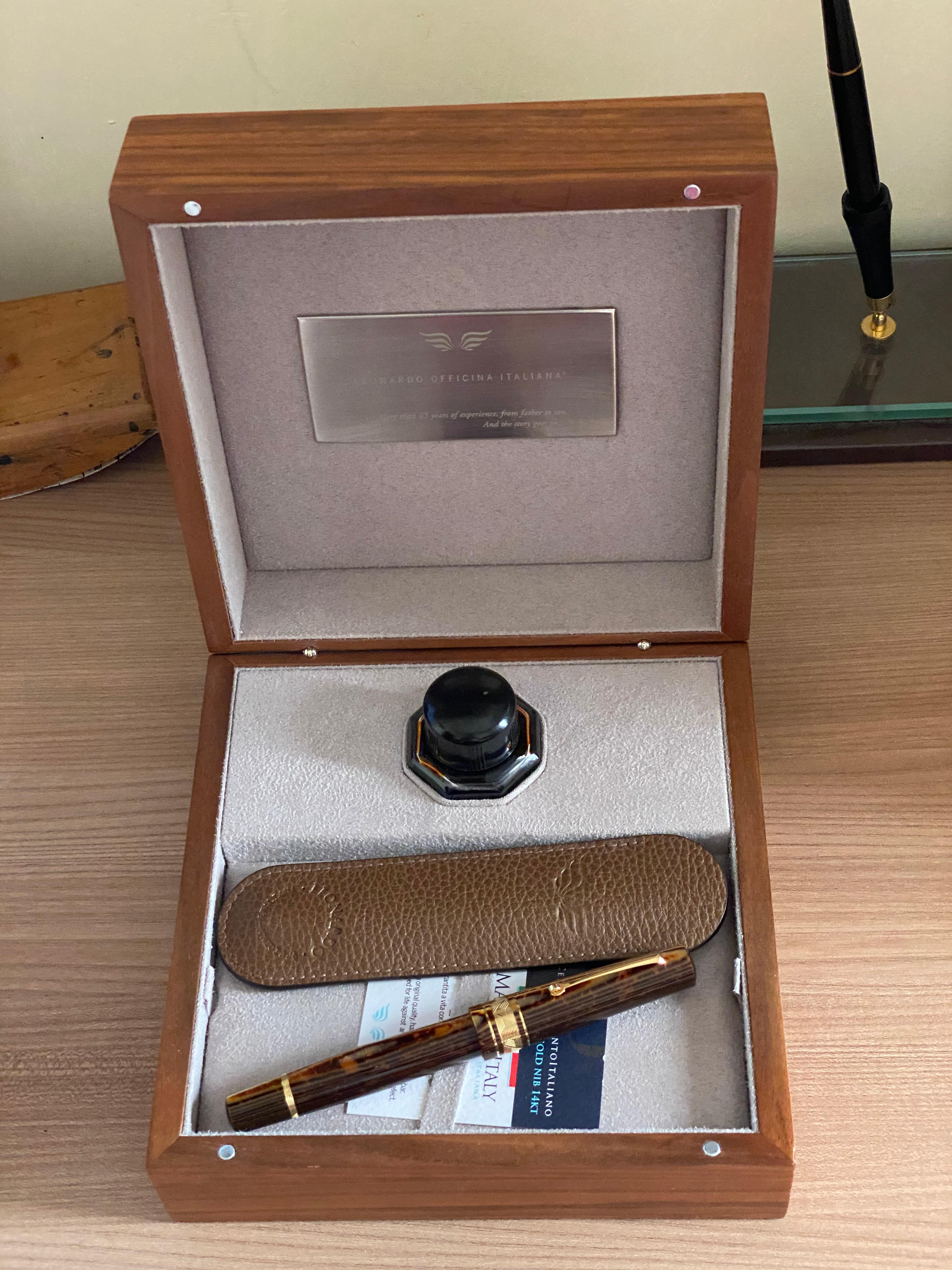 La storia ha inizio qualche mese fa quando abbiamo avuto il privilegio di conoscere di persona, durante uno dei raduni del Circolo Stilografico Napoletano, il fondatore di Leonardo Officina Italiana, Salvatore Matrone, e il padre Ciro, uno dei tre fondatori di Delta. Discorrendo con loro del più e del meno, delle tante novità in cantiere, dei nuovi pistoni che sono ora implementati sulle nuove Momento Zero Grande, dei nuovi modelli, etc. etc., è venuto fuori che avevano ancora disponibile un po' di pregiata celluloide Arco Marrone. E lì mi si è impiantato il tarlo nel cervello!