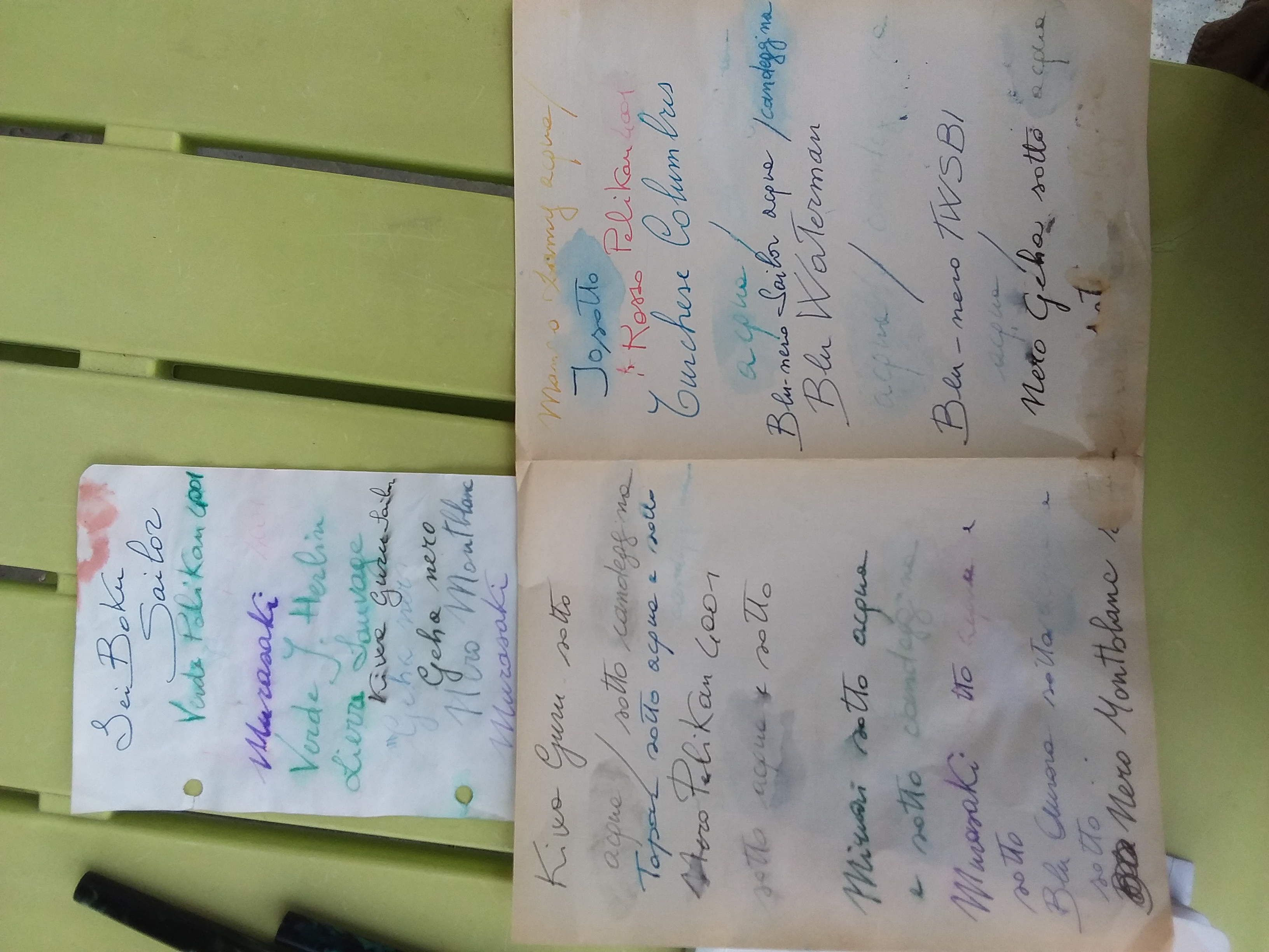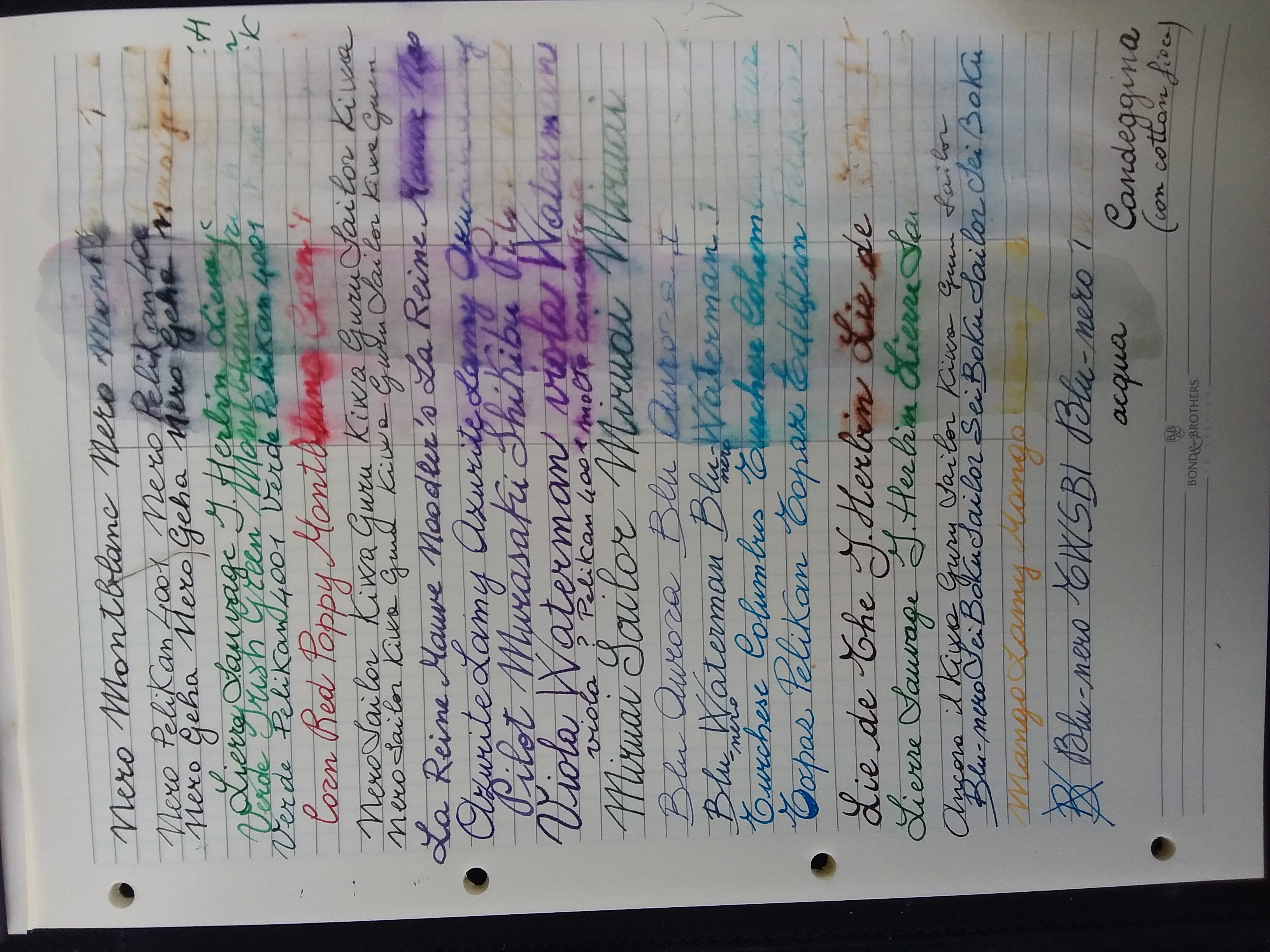 L'acqua può essere un incidente, la candeggina DOLO. Da quest'ultimo escono sani il Kiwa Guro e l'inchiostro di China Pelikan nelle scritte esplicative. Quasi sani il SeiBoku e il La Reine Mauve.