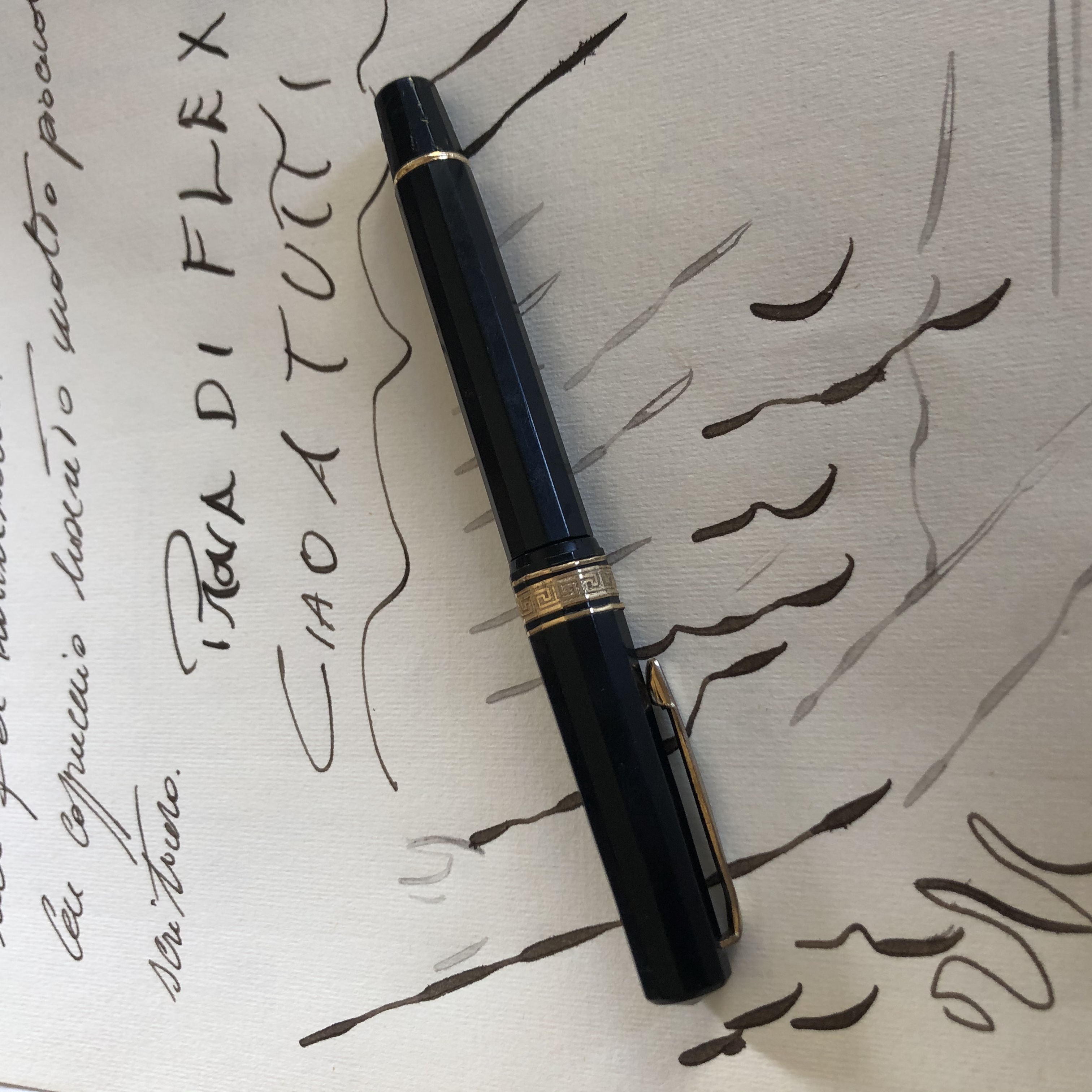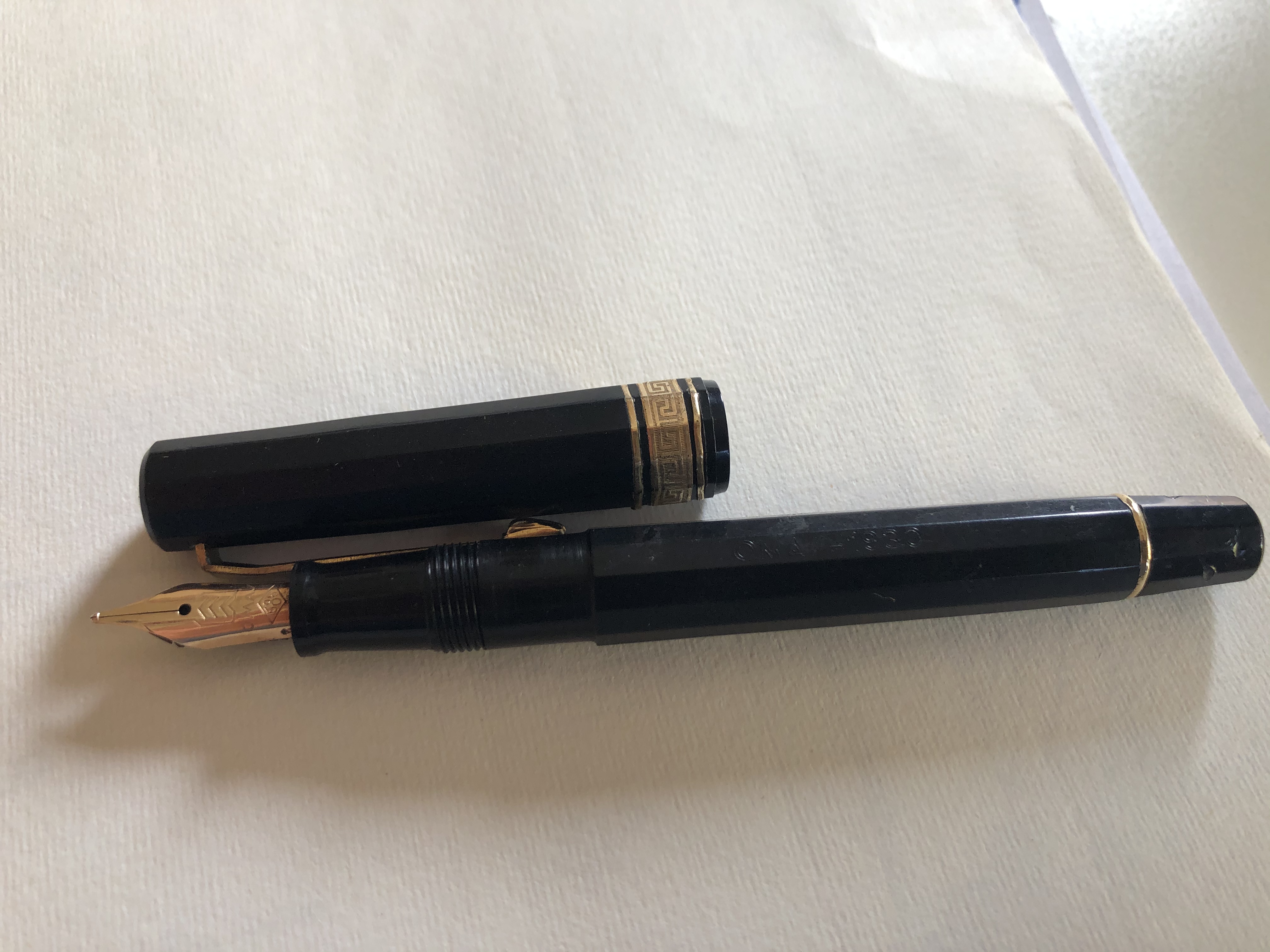 Buona giornata a tutti. Ho da poco ripreso una vecchia Omas 1930.... quasi non ricordavo di averla... e nello spolverare l’ho riscoperta. L’ho pulita un po’ ed ho effettuato una prova di scrittura improvvisata a e da principiante... ho riscoperto un pennino flessibile e molto piacevole.... non proprio morbidissimo. Ora l’ho riposta nella vetrinetta.... purtroppo è troppo piccola per me e non è tra le mie preferite. Ma è comunque una bella penna.... vi allego delle foto.