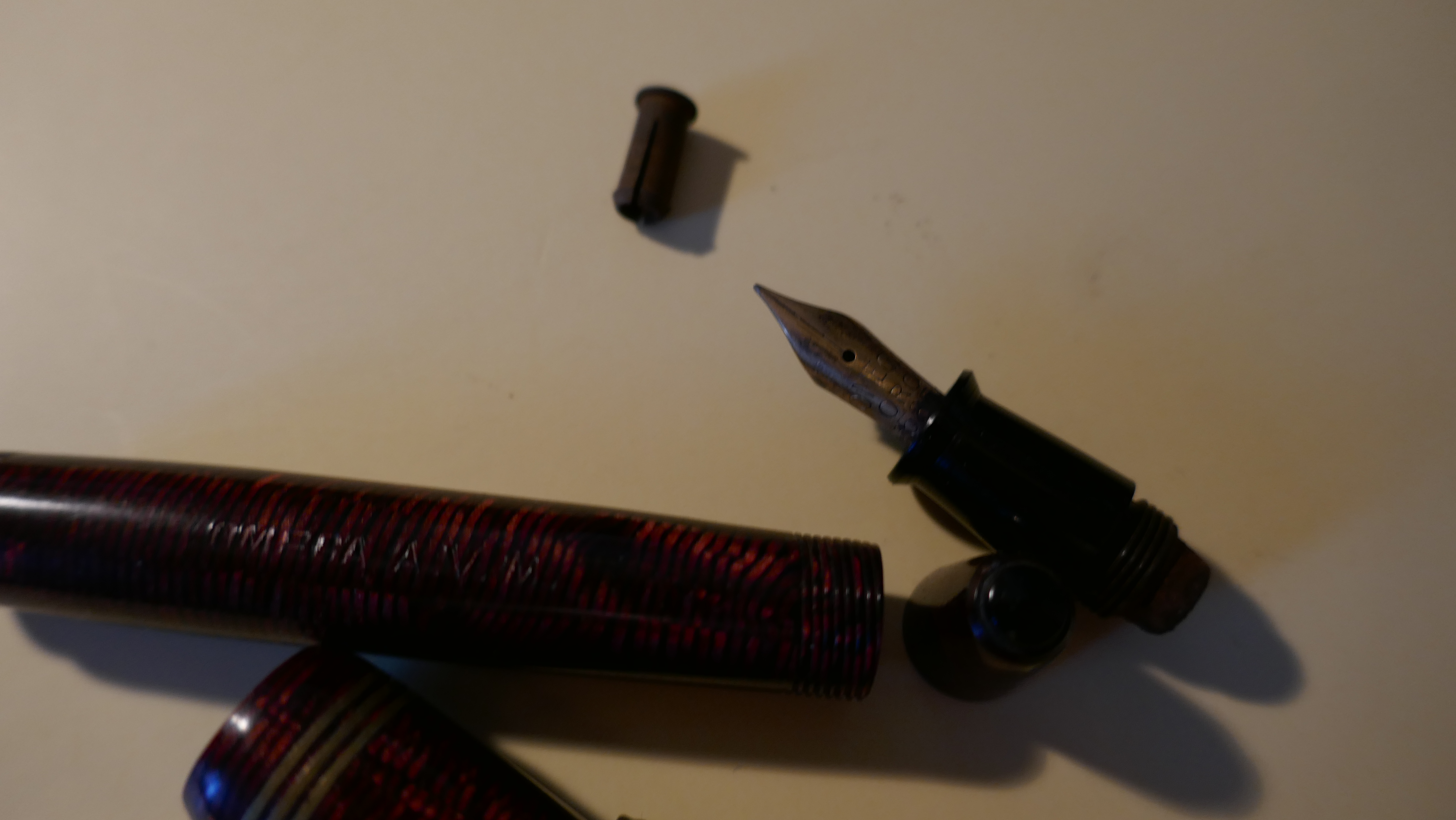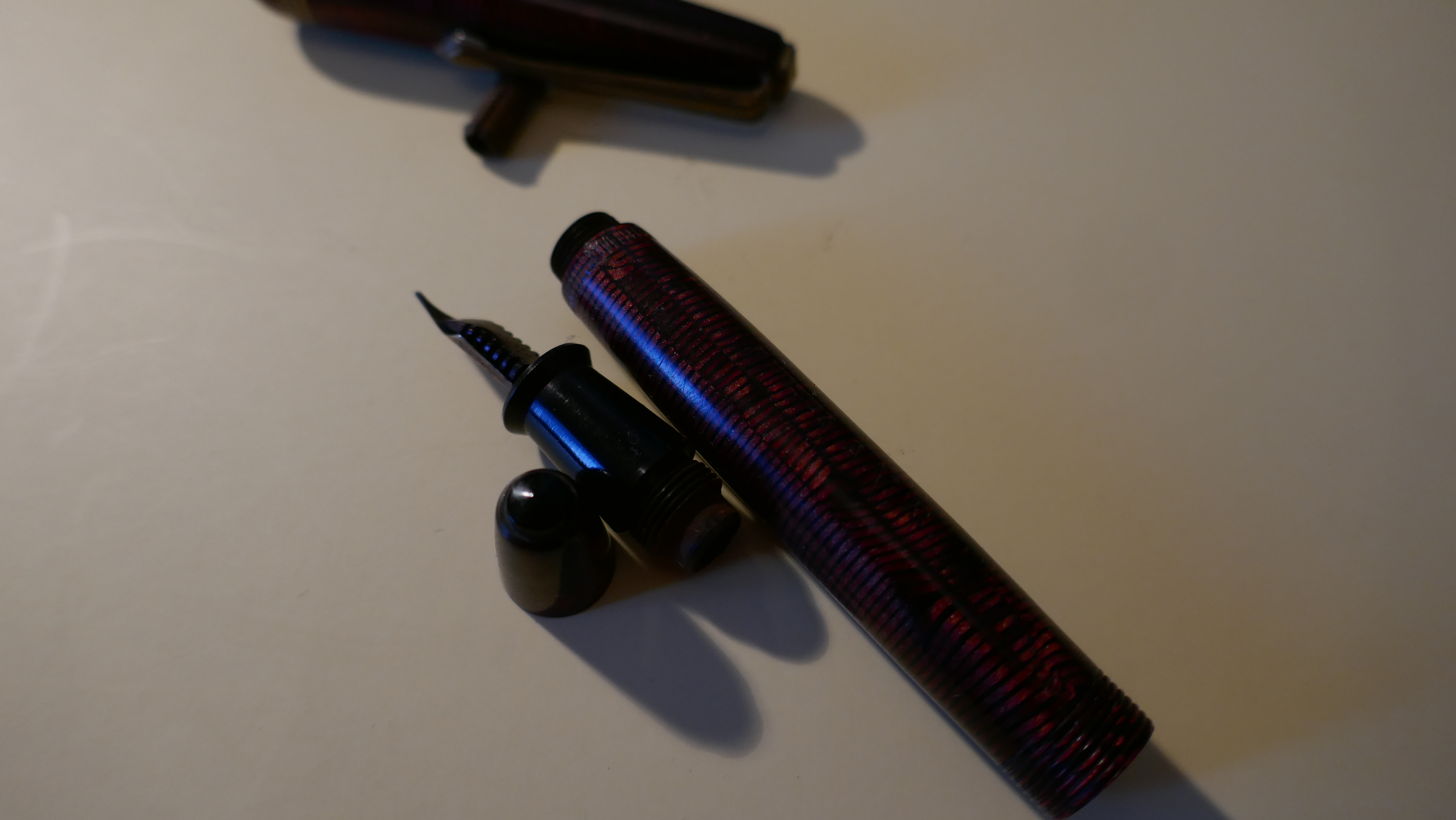 Misura in questa posizione la distanza tra la base dell'attacco del serbatoio nel puntale e la parte superiore della penna, ovvero dalla parte superiore della filettatura del fondello, da dove spunta il pulsante di carica. Aggiungi 2-3 mm, perché la barra deve spuntare leggermente fuori dal foro e quella è la misura.
