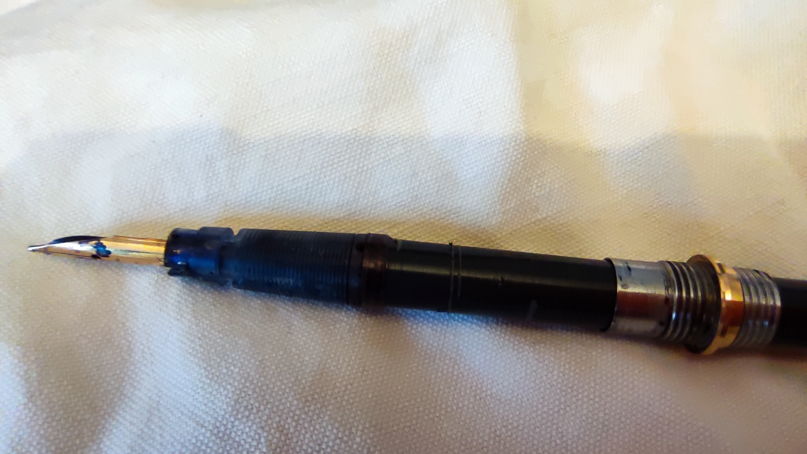 La freccetta è a posto; il pennino pure; il gioiello, se non si trova, si potrebbe ricostruire; il fusto si lucida per bene; e questa penna tornerà ad essere la Signora che era, pronta a scrivere ancora per molti anni (con qualche pulizia intermedia, e, ovviamente, avendo l'accortezza di non lasciare mai seccare l'inchiostro all'interno: o la si usa continuativamente, o la si pulisce e la si ripone). :thumbup:
